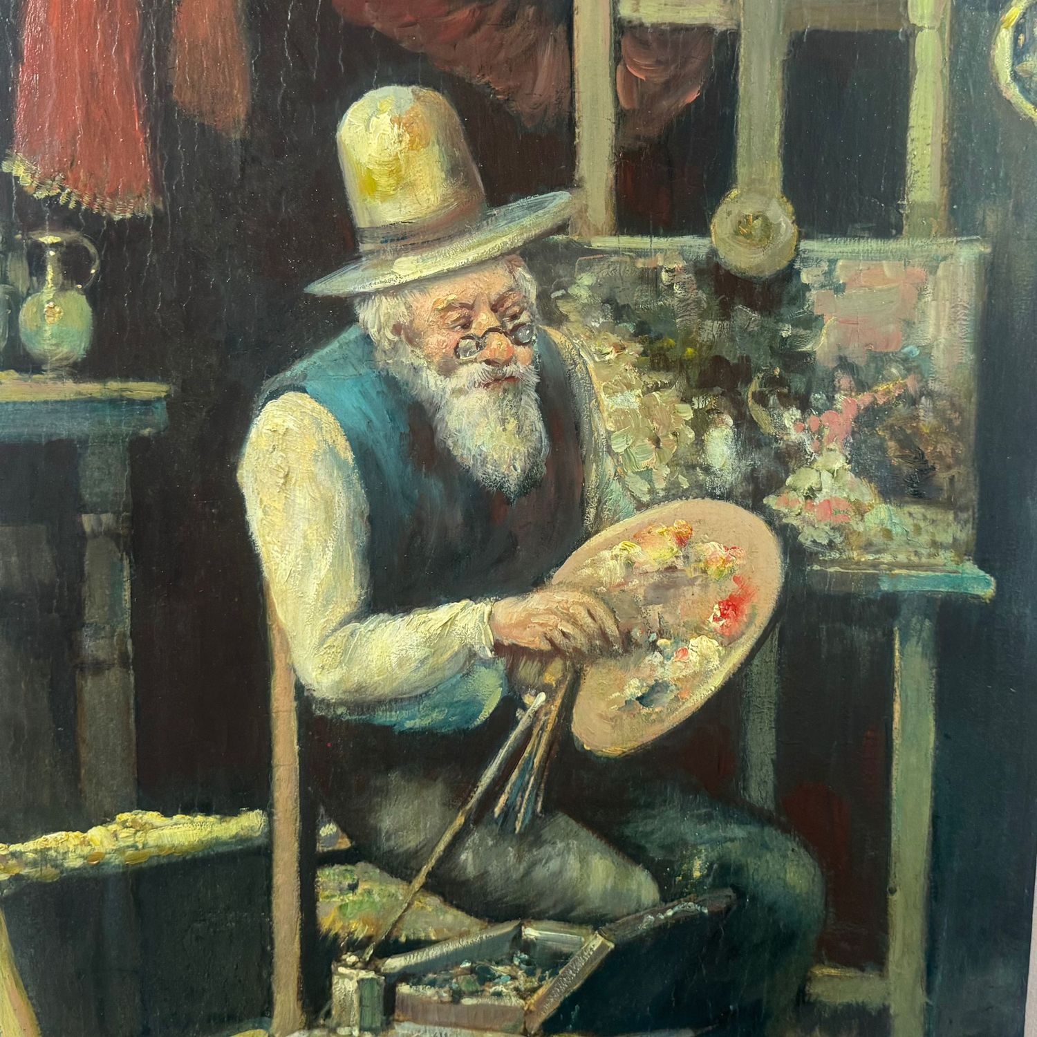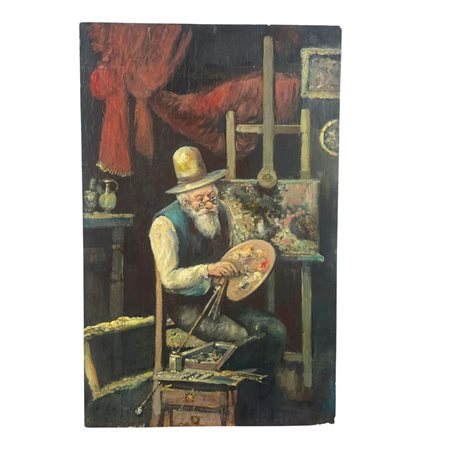 Dipinto olio su tavola, periodo XX secolo scuola Europea raffigurante Vecchio pittore.