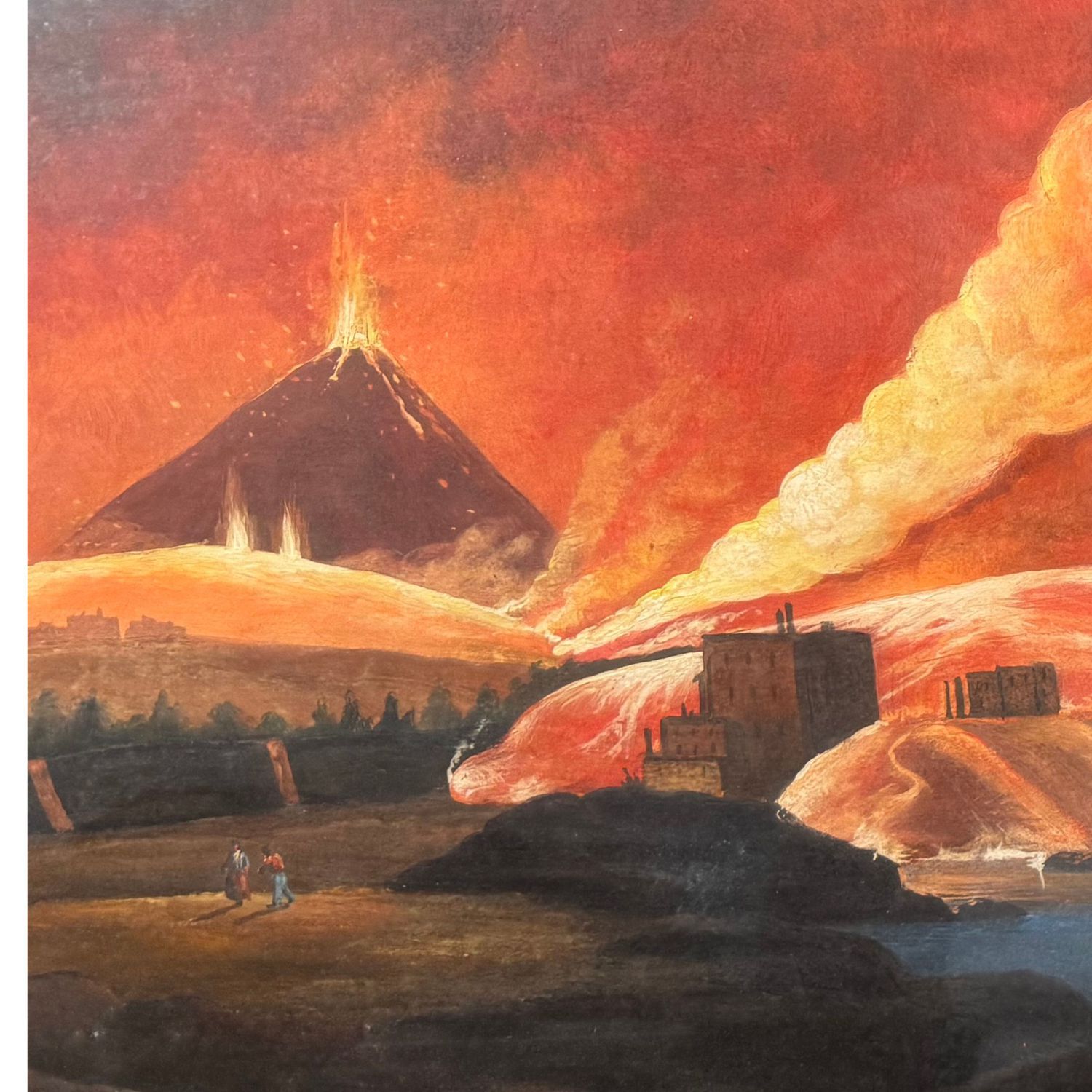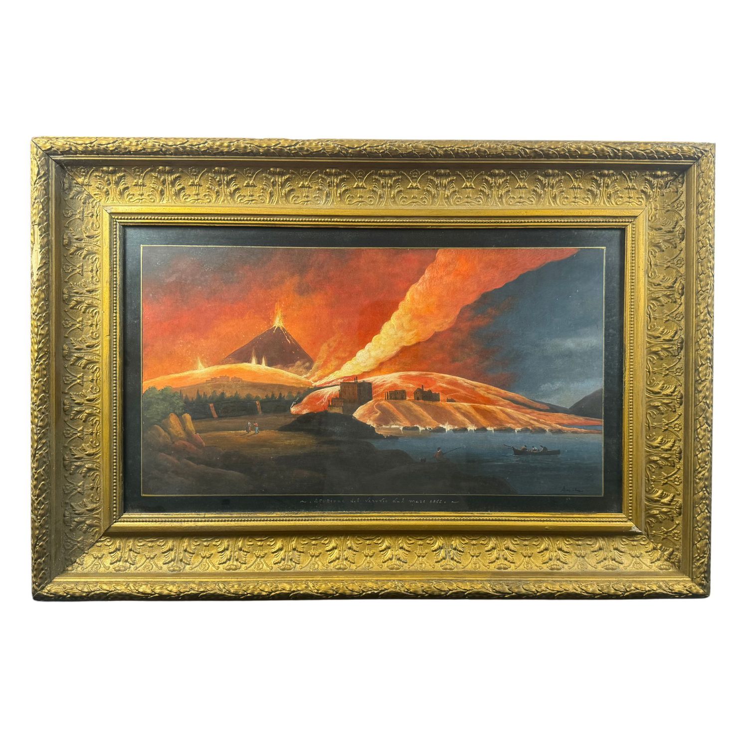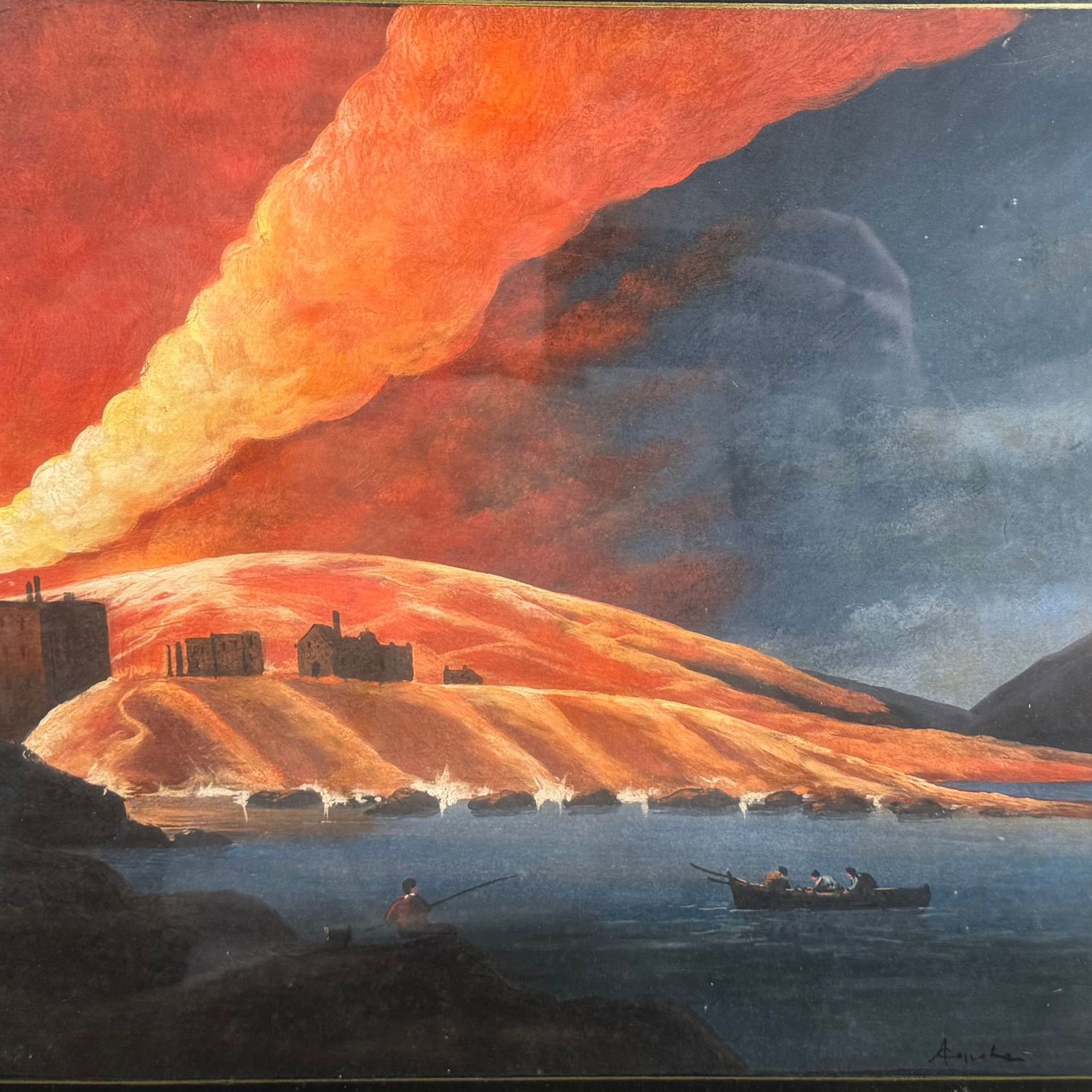 Dipinto guazzo (tempera su carta), periodo XX secolo scuola Italiana, raffigurante Eruzione del Vesuvio.