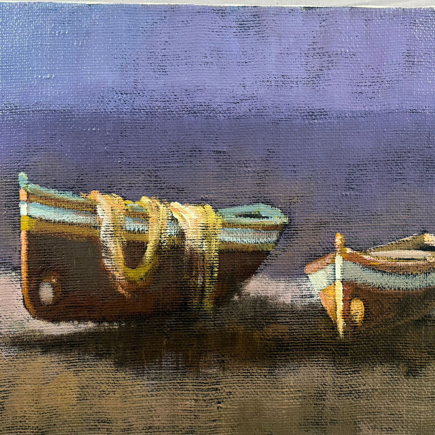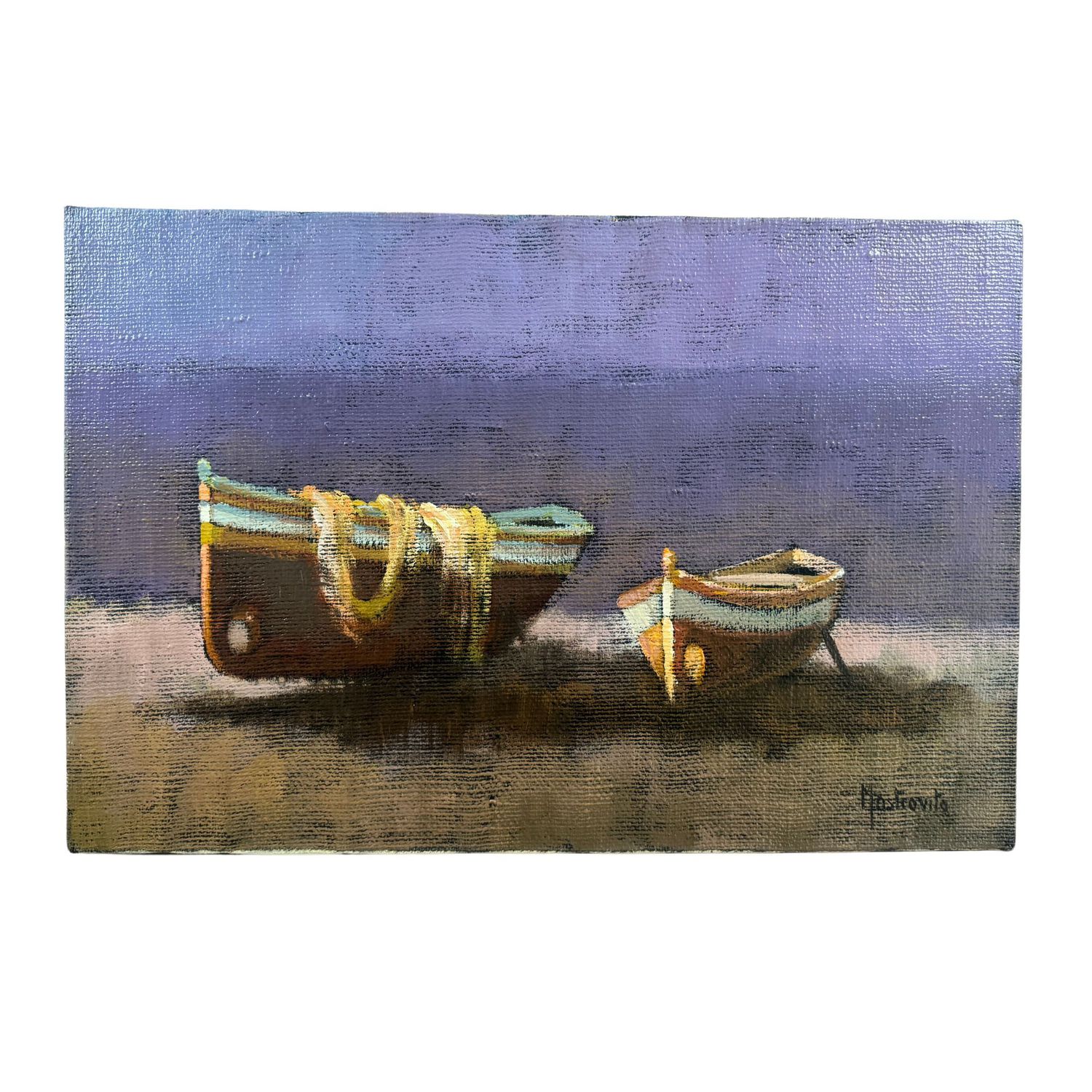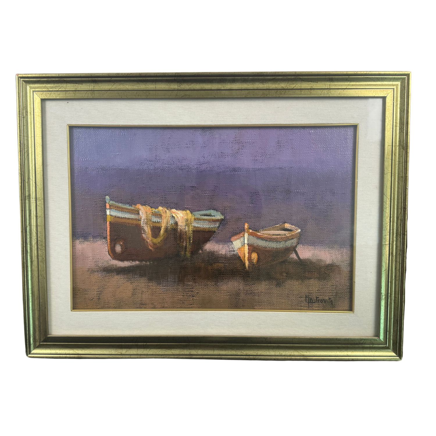 Dipinto olio su tela, periodo XX secolo scuola Italiana, raffigurante Barche a secco.