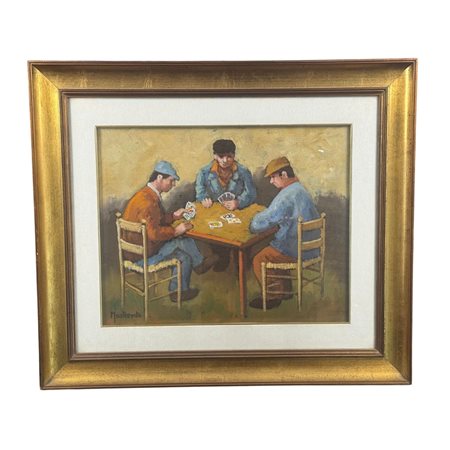 Dipinto olio su tela, periodo XX secolo scuola Italiana, raffigurante Gioco di carte.