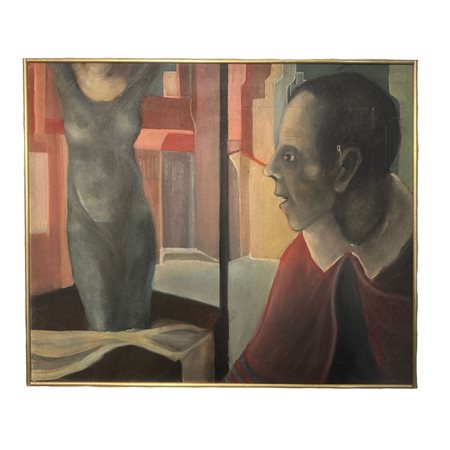 Dipinto olio su tela, periodo XX secolo scuola Italiana, raffigurante Sguardo incantato.