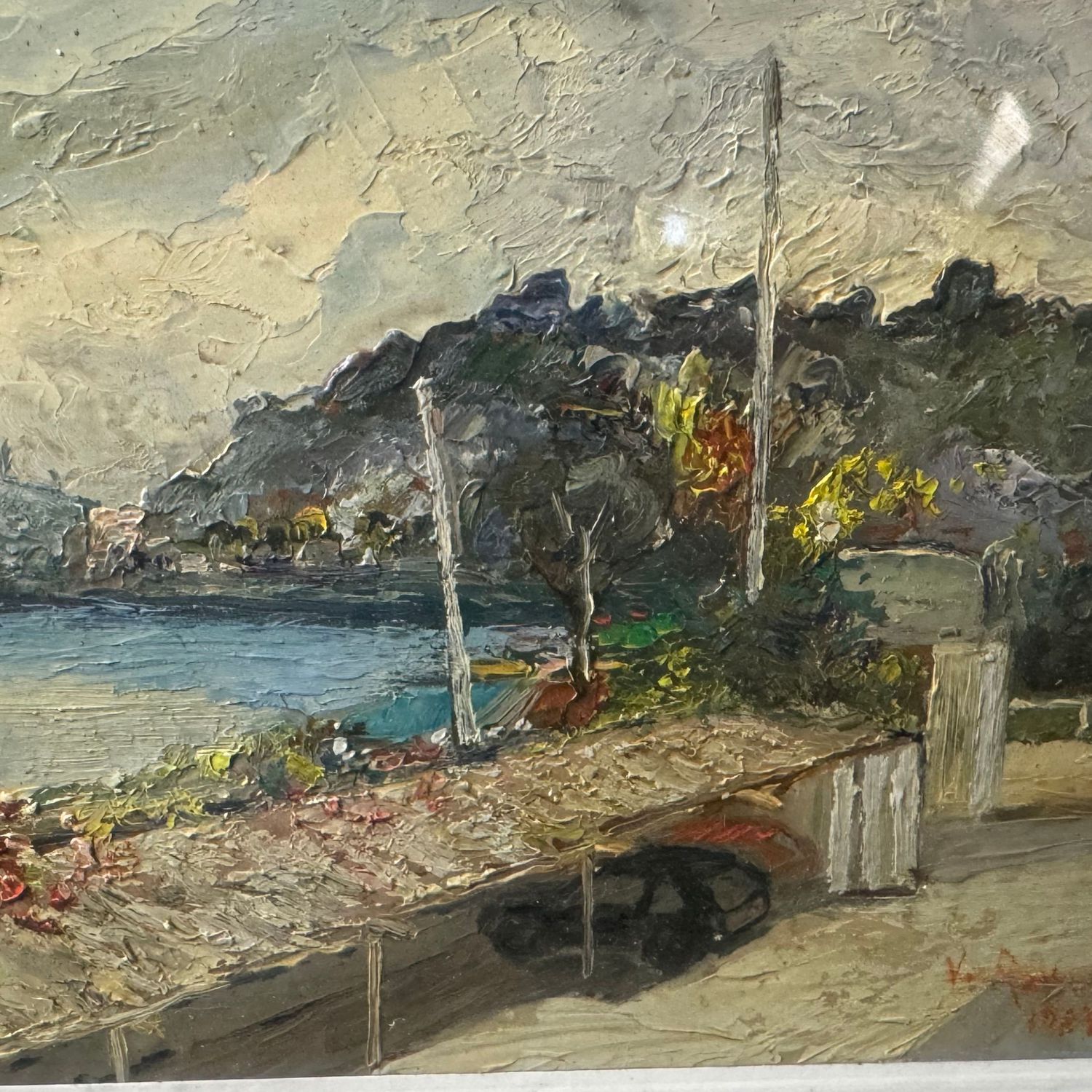 Dipinto olio su tavoletta, periodo XX secolo scuola Italiana, raffigurante Paesaggio (luogo imprecisato).