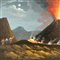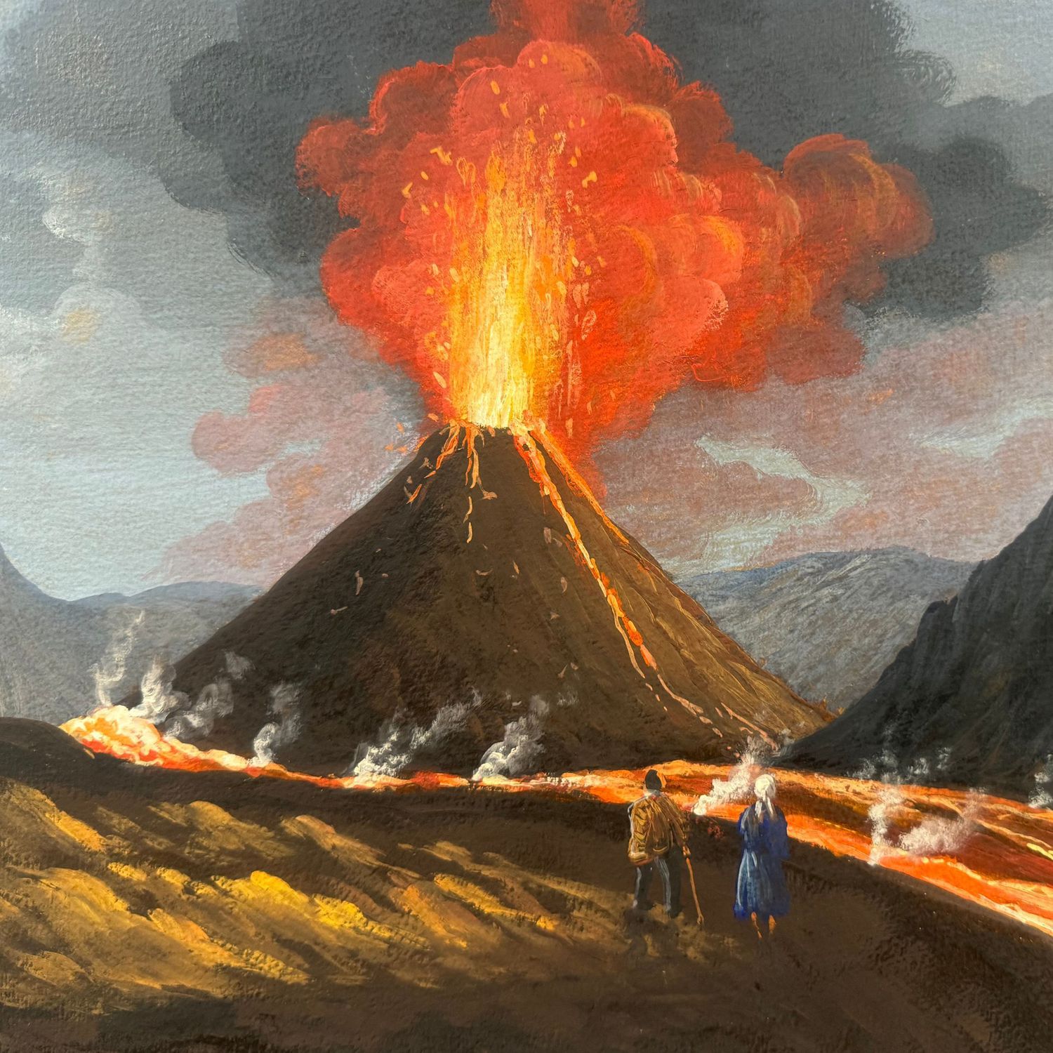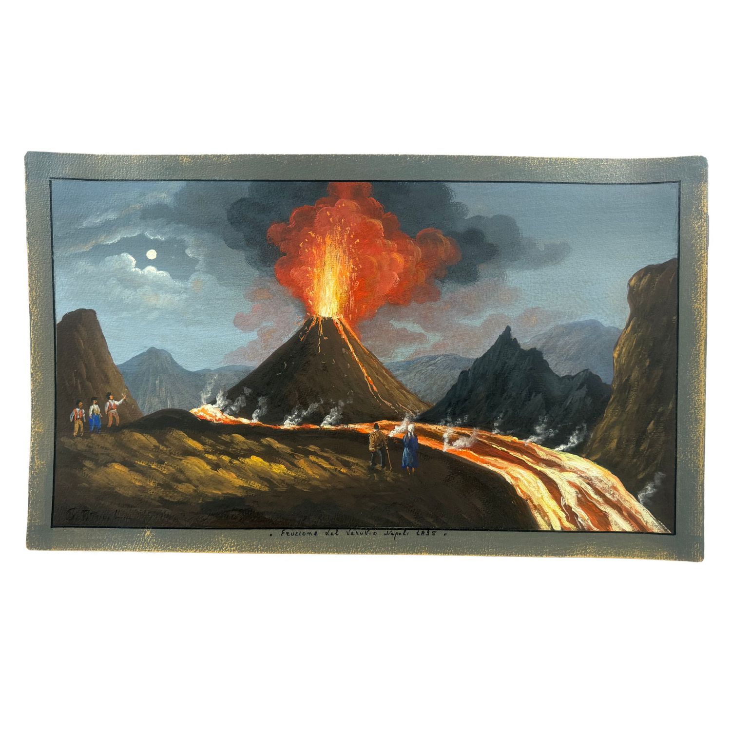 Dipinto tempera su carta, periodo fine XIX secolo scuola Italiana, raffigurante Eruzione ravvicinata del Vesuvio nel 1895.