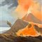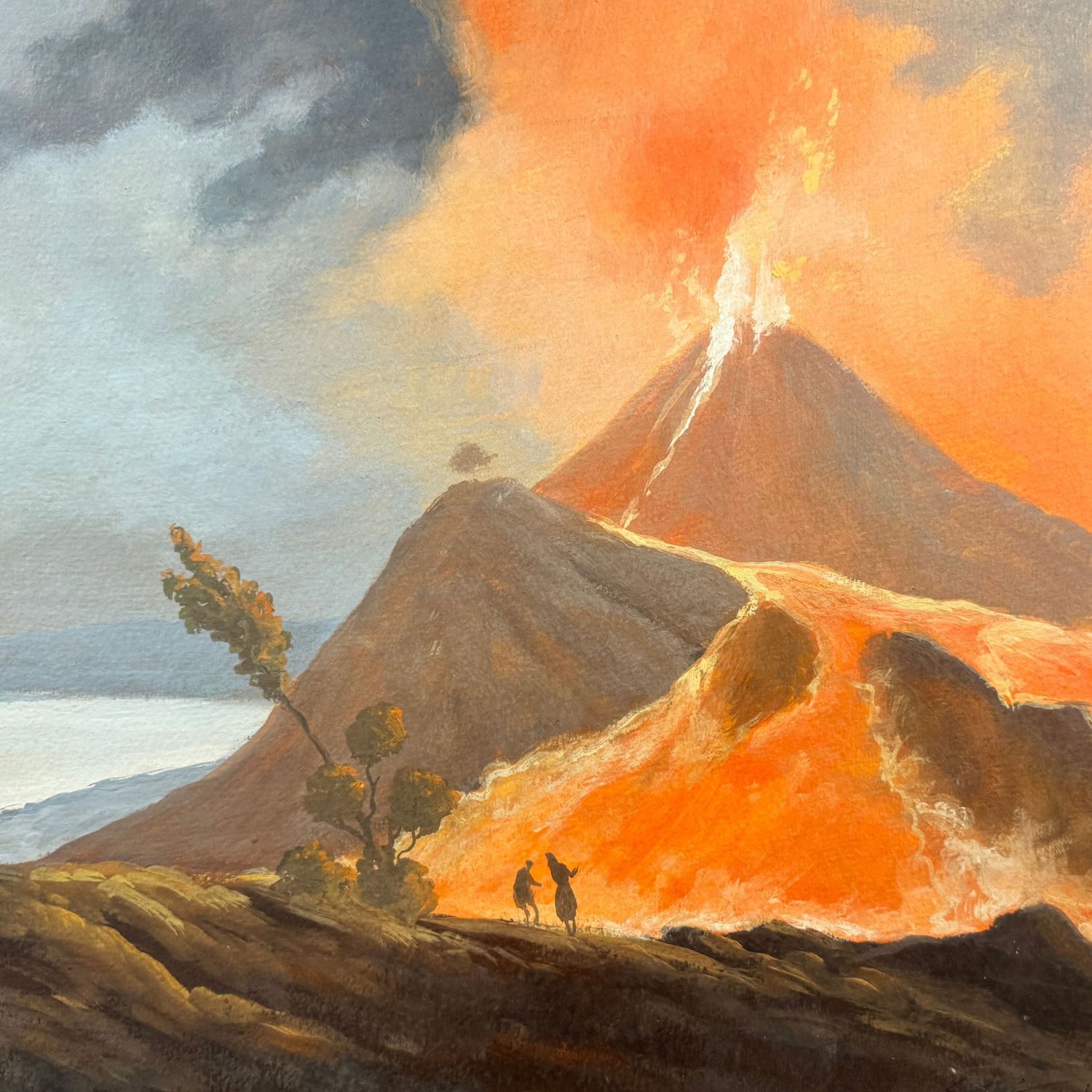 Dipinto tempera su carta, periodo fine XIX secolo scuola Italiana, raffigurante Eruzione ravvicinata del Vesuvio nel 1895.