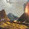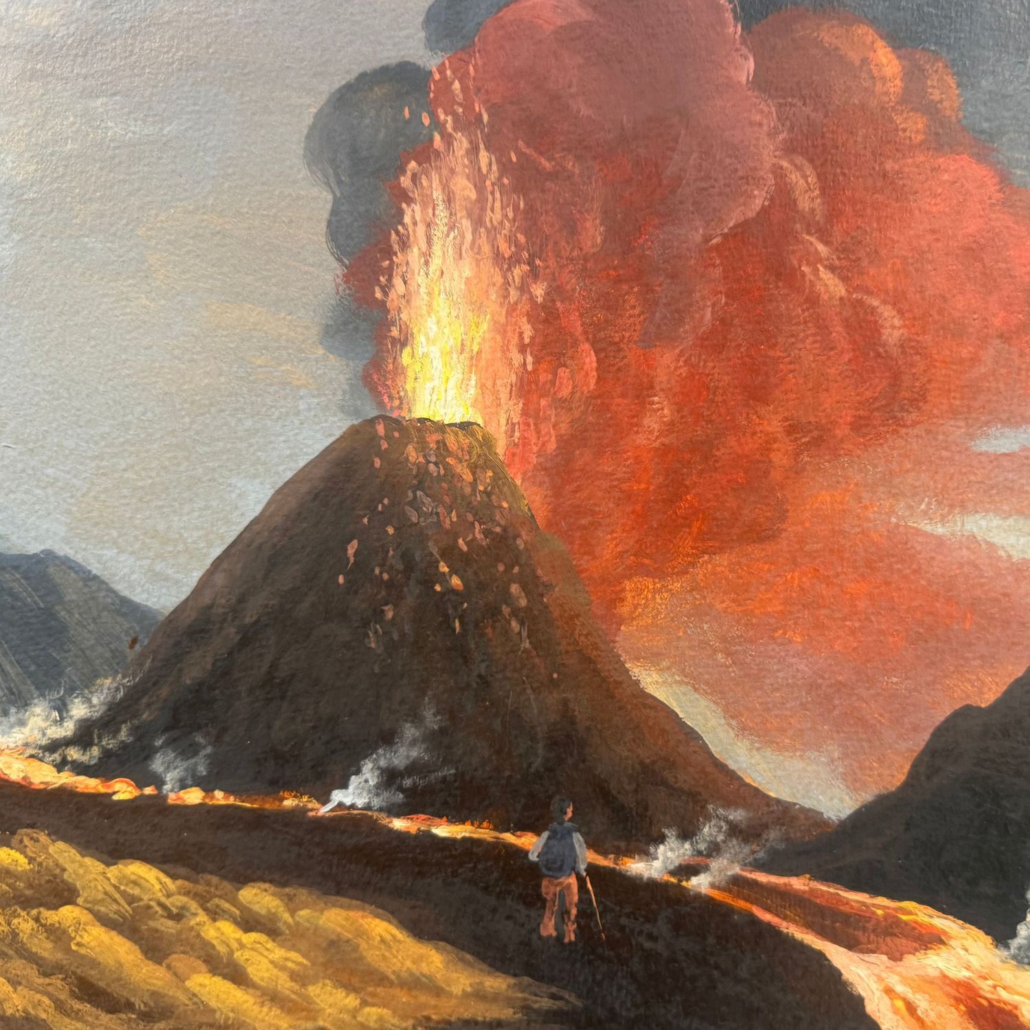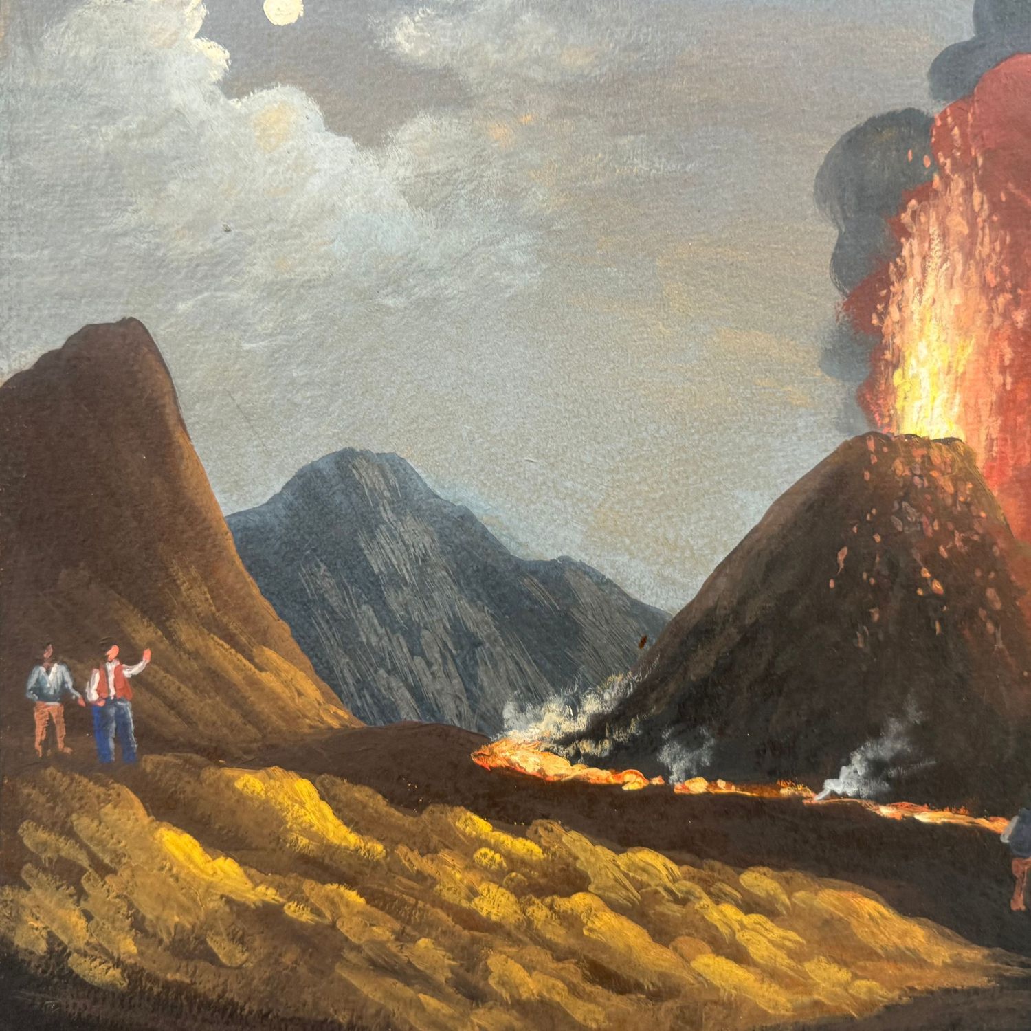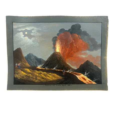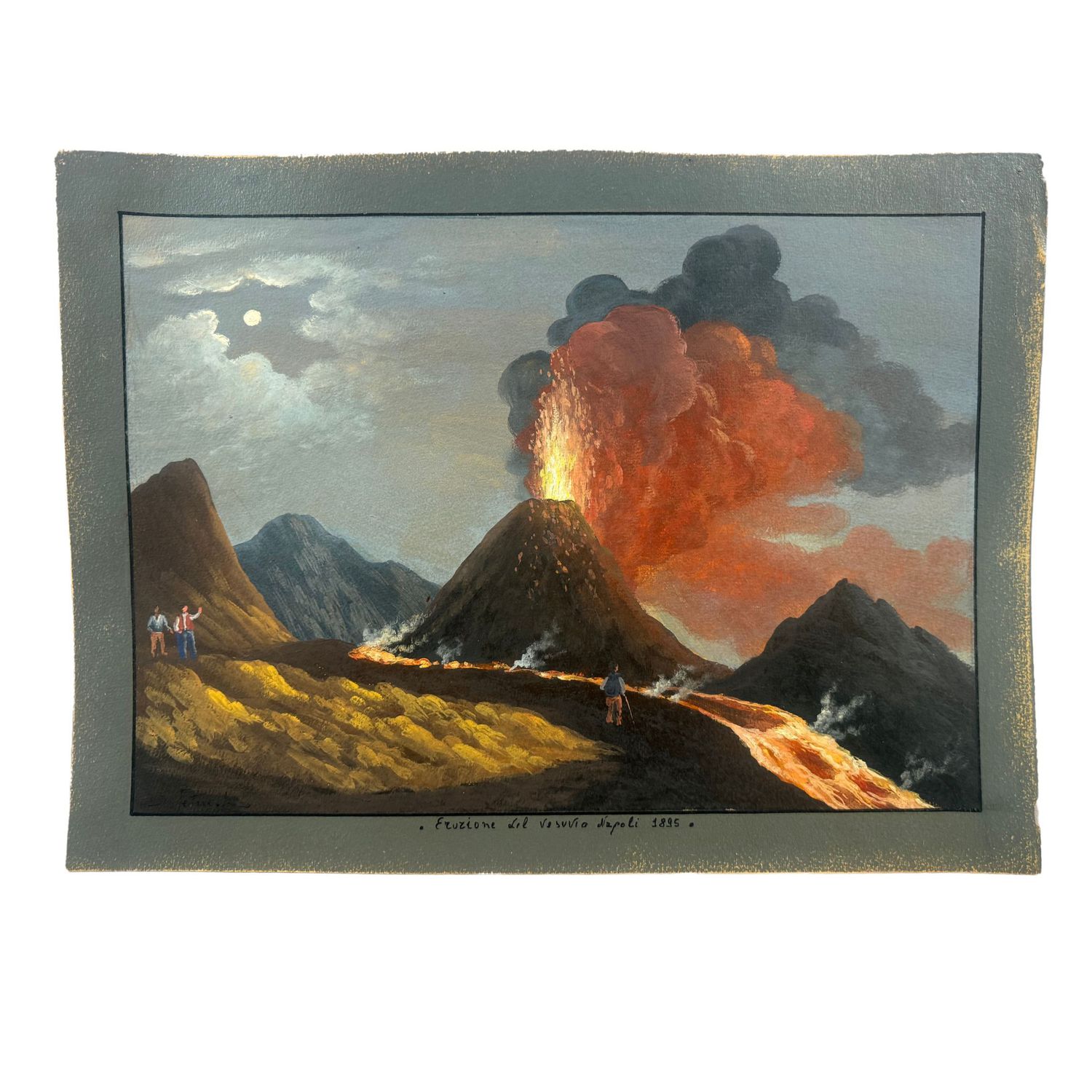 Dipinto tempera su carta, periodo fine XIX secolo scuola Italiana, raffigurante Eruzione ravvicinata del Vesuvio nel 1895.
