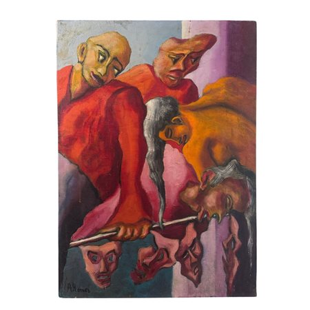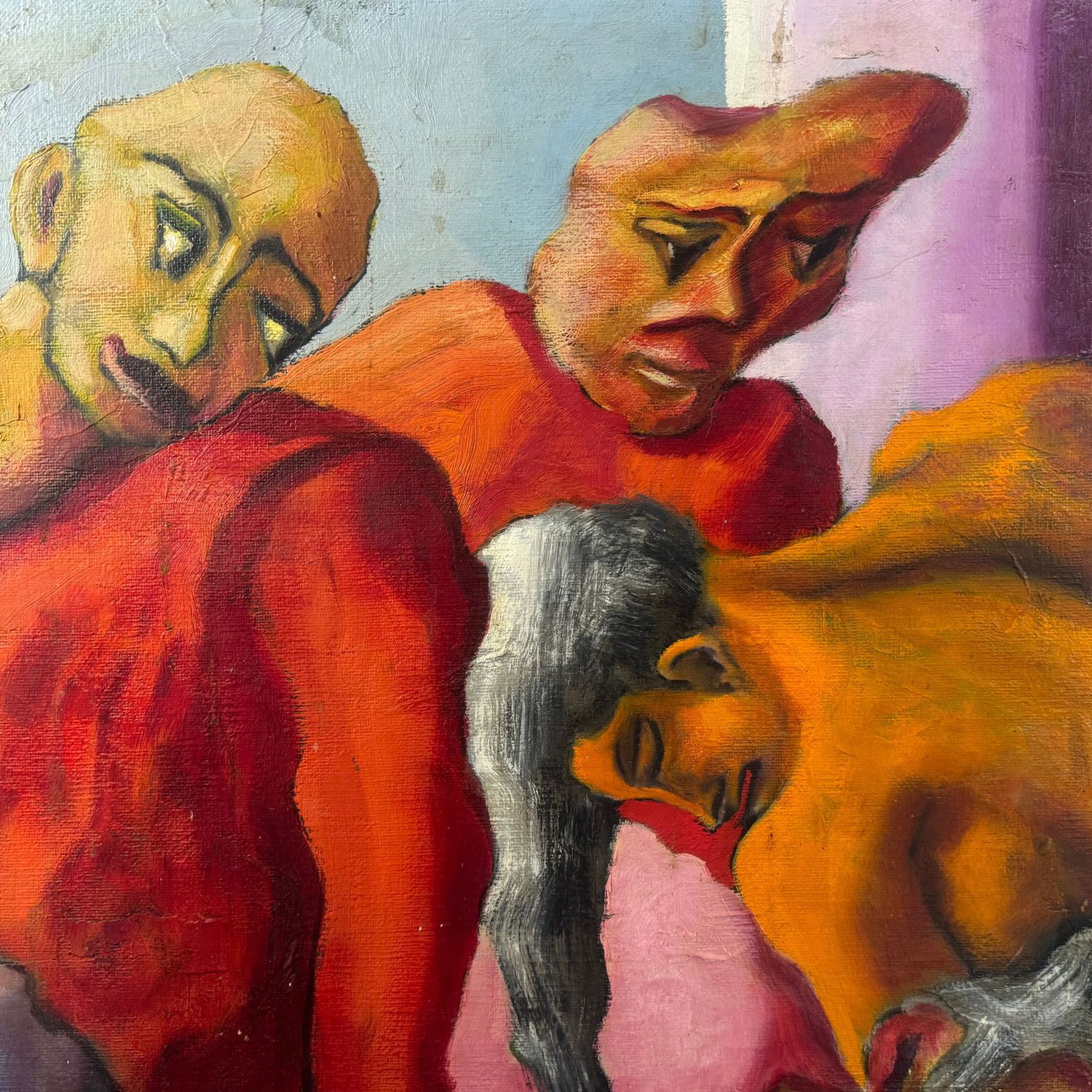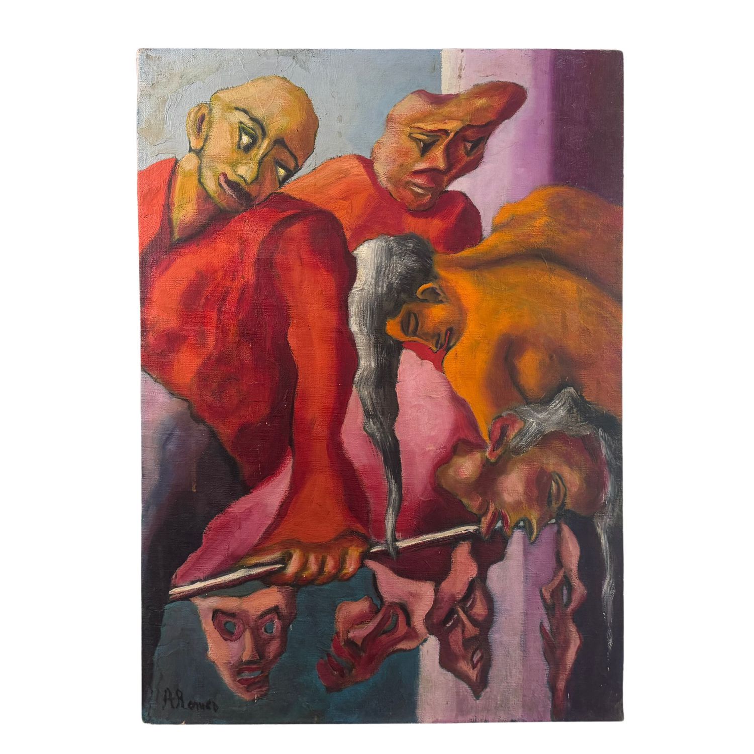Dipinto olio su tela, periodo XX secolo scuola Italiana, raffigurante Figure astratte.