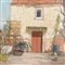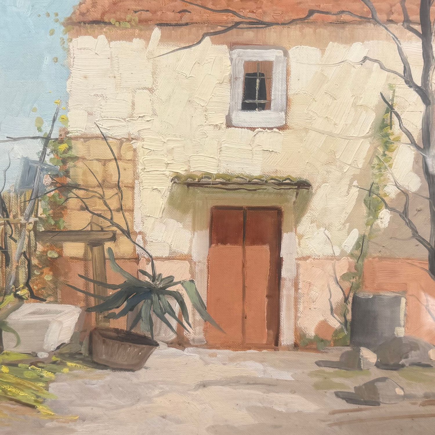 Dipinto olio su pannello, periodo XX secolo scuola italiana, raffigurante Casale di periferia.