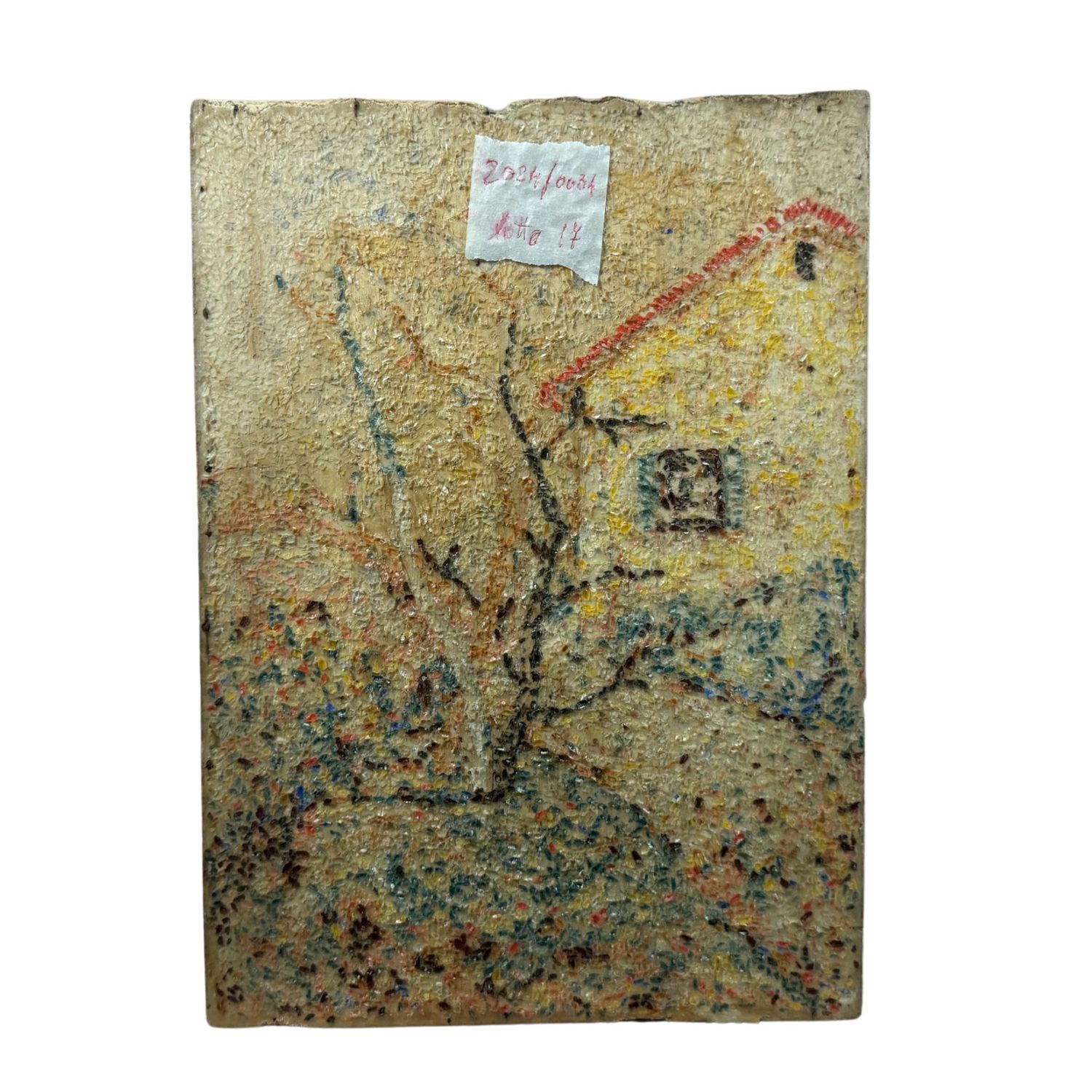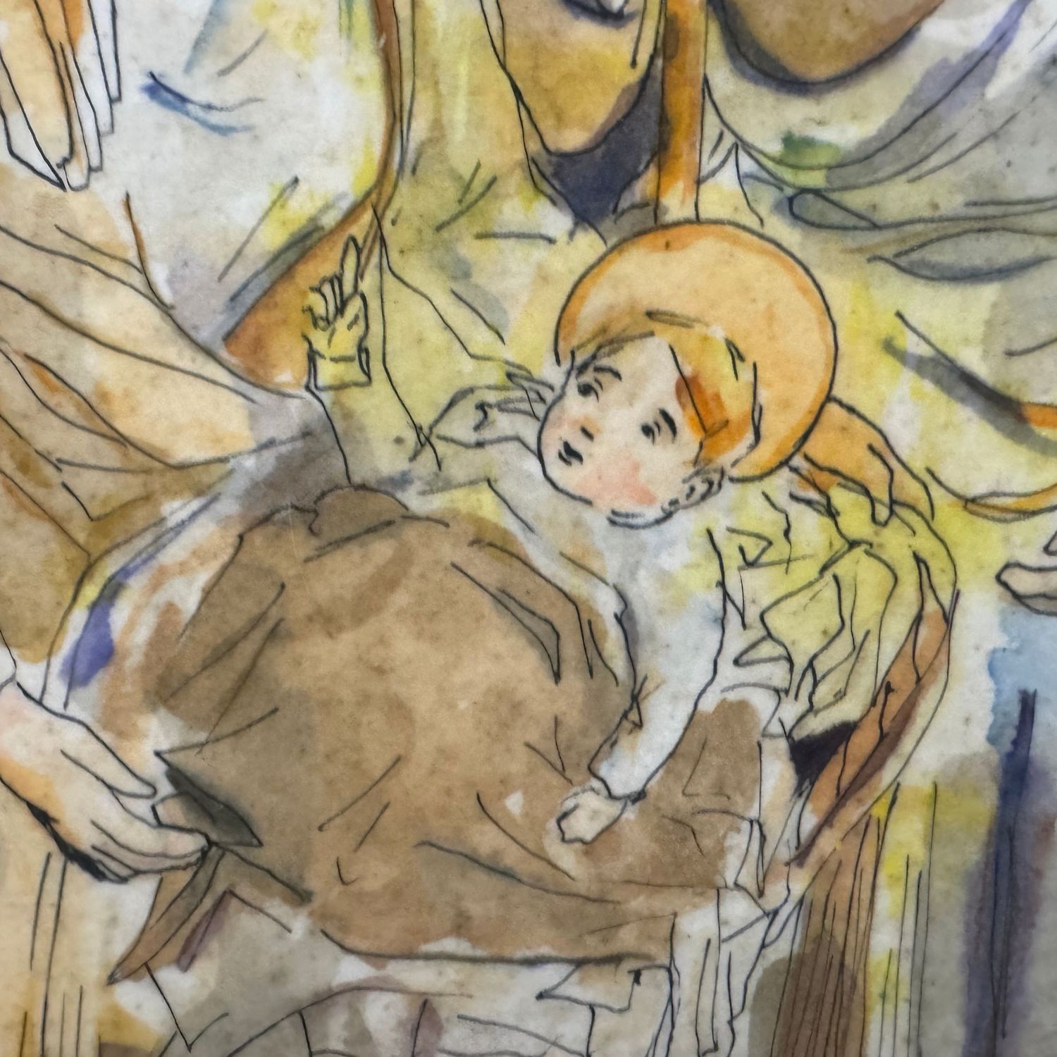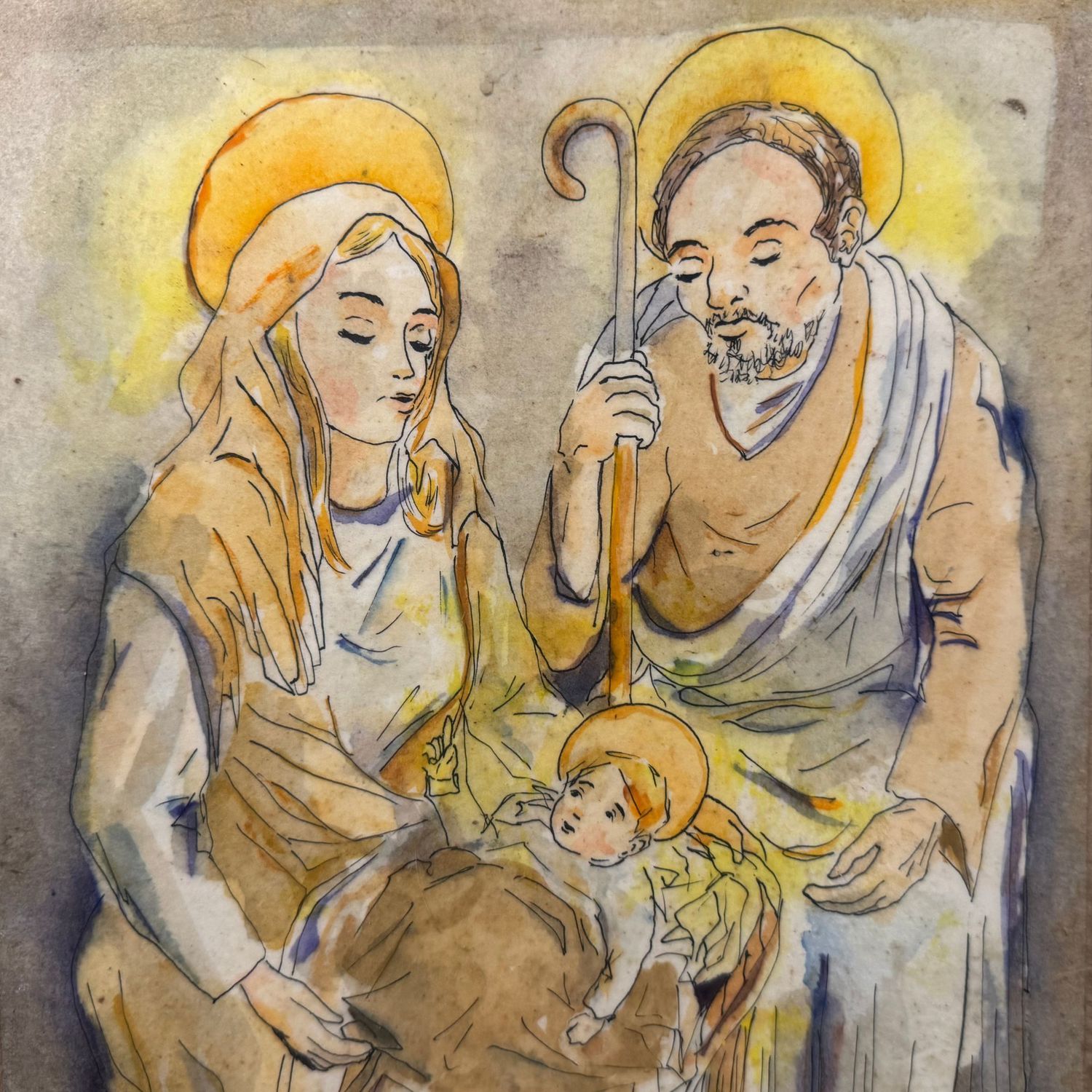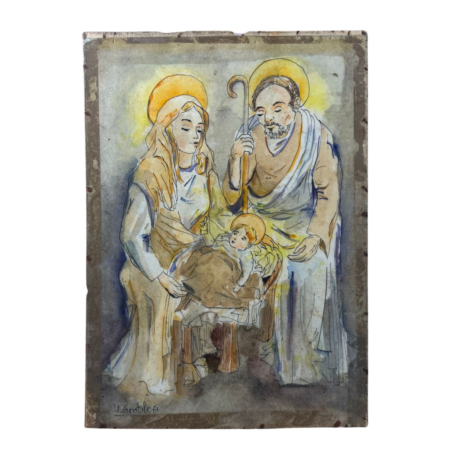 Dipinto tecnica mista su cartoncino, periodo XX secolo scuola Italiana, raffigurante Sacra Famiglia.