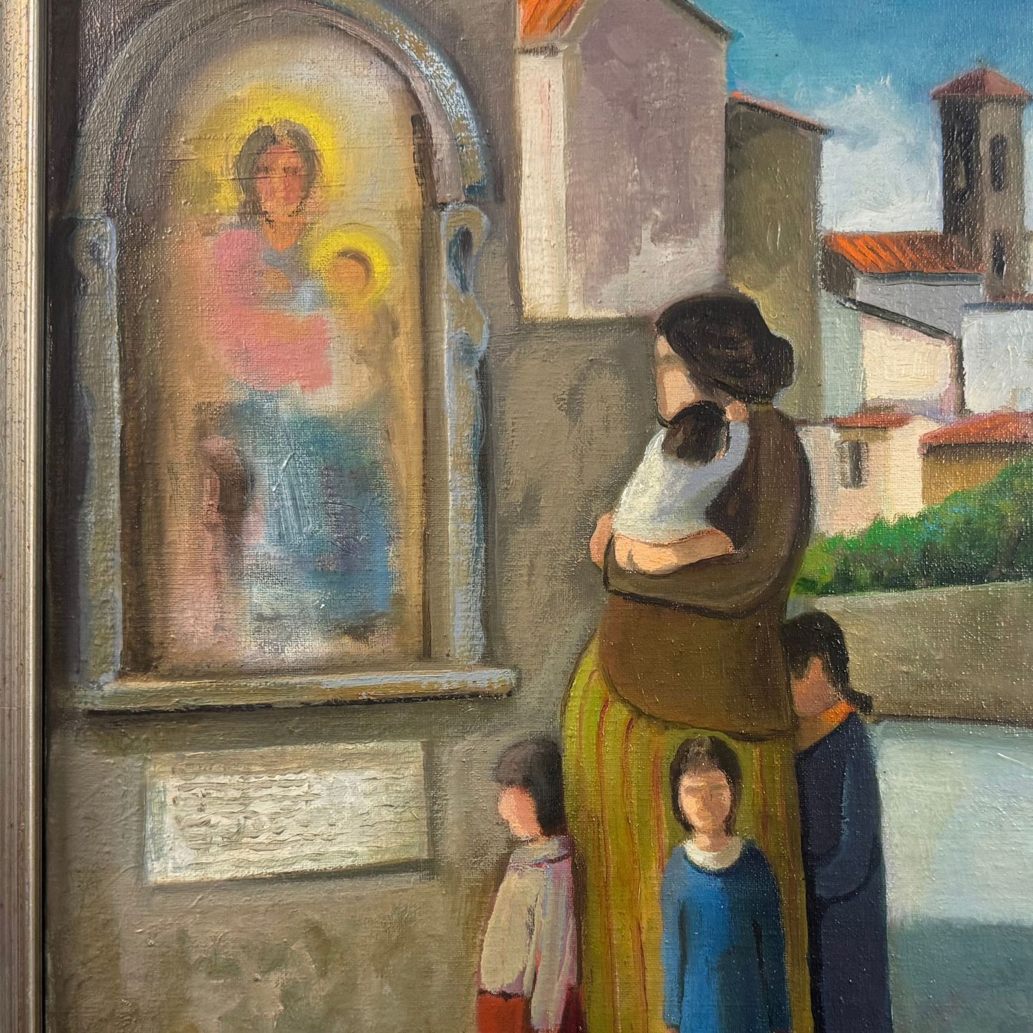 Dipinto olio su tela, periodo XX secolo scuola Italiana, raffigurante Famiglia in preghiera.