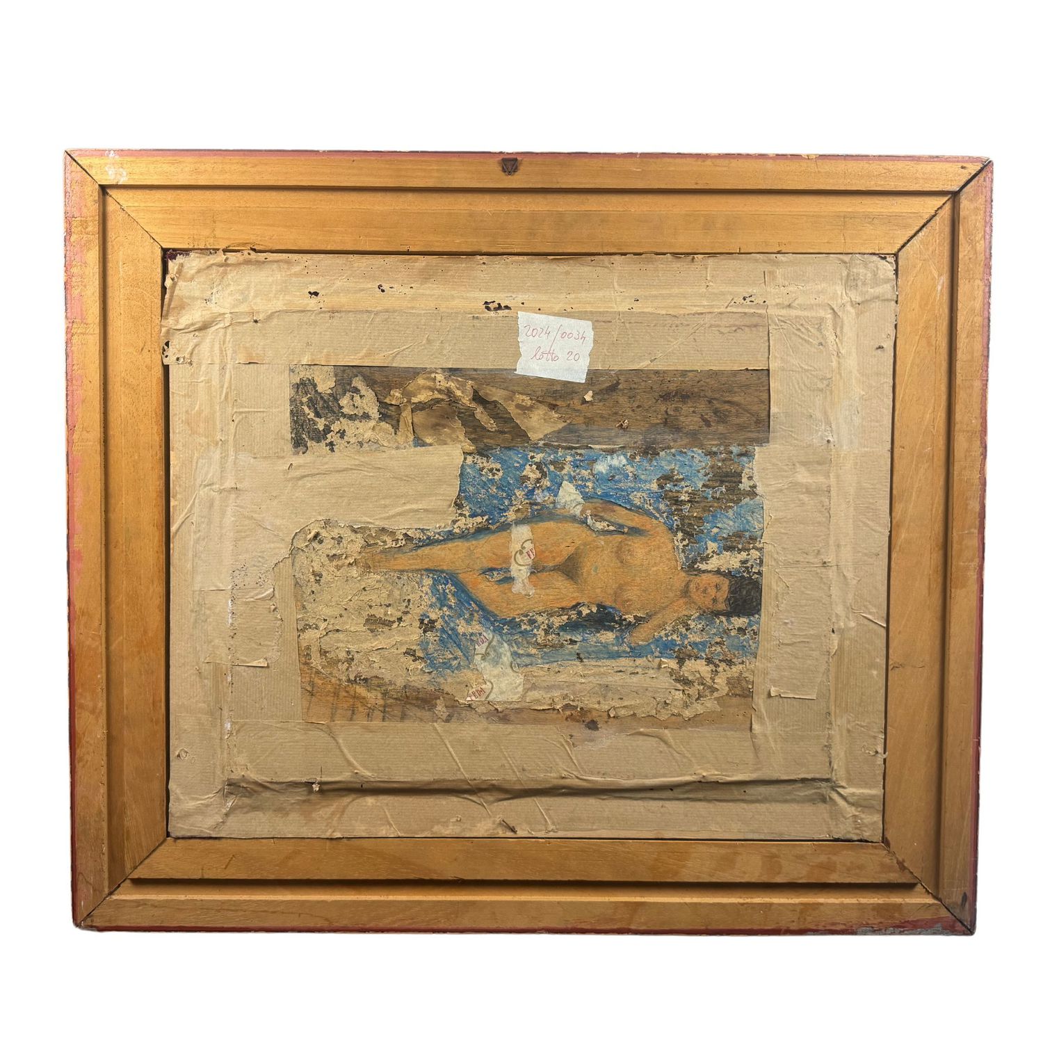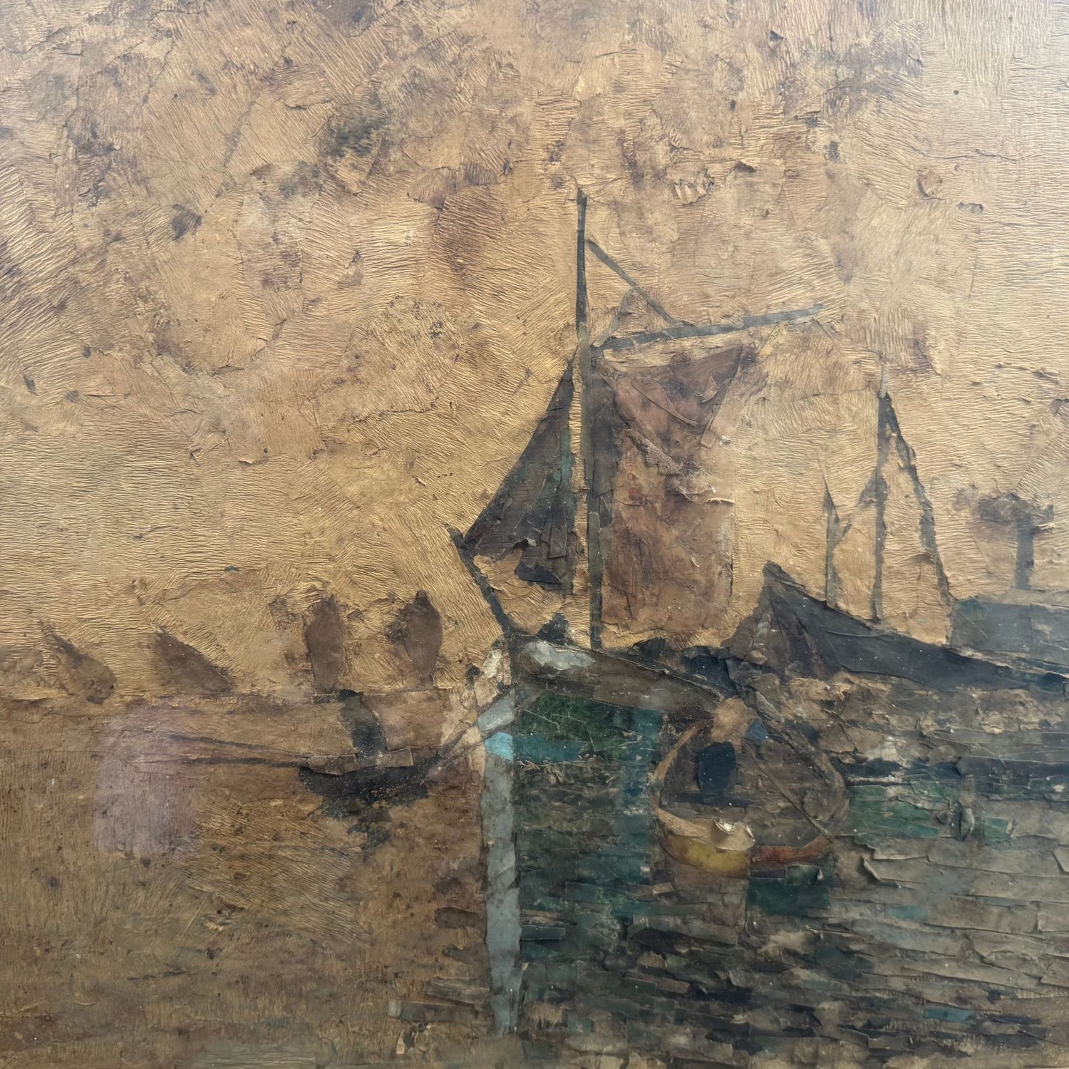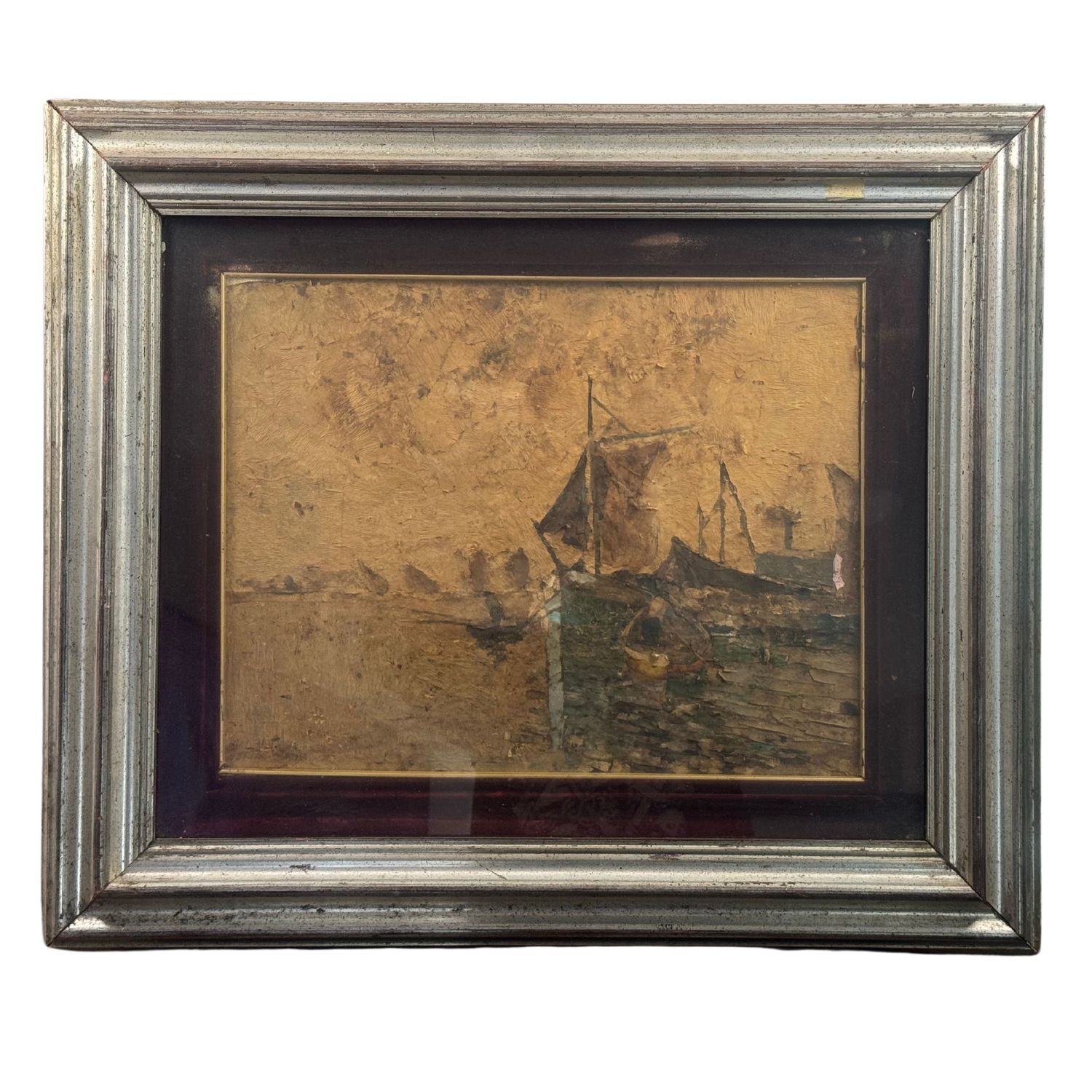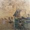 Tecnica mista su pannello, periodo XX secolo scuola Italiana, raffigurante Porto con barche.