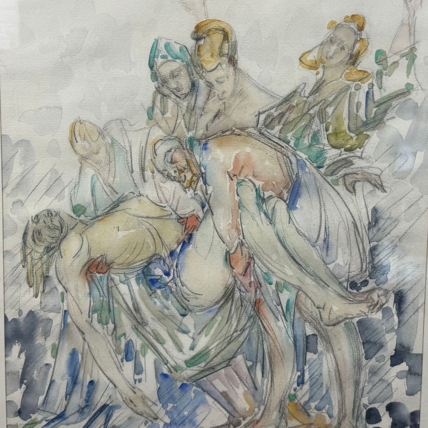 Dipinto acquerello su carta, eseguito a Roma nel 1930, raffigurante La deposizione di Cristo.