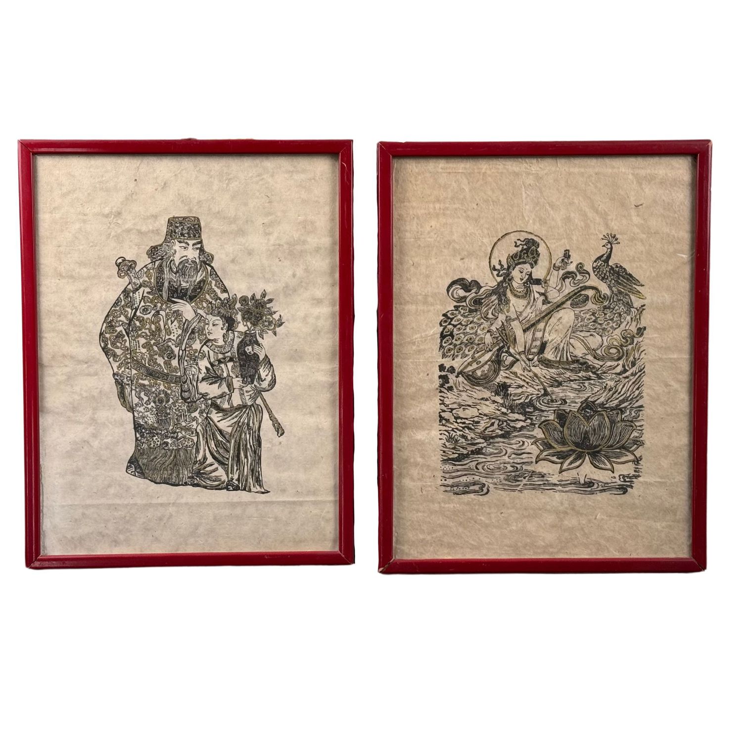 Coppia di acquerelli su carta riso, periodo XX secolo scuola Continentale, raffiguranti Figure Orientali.