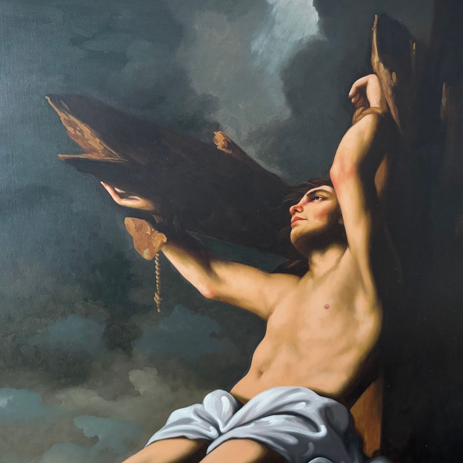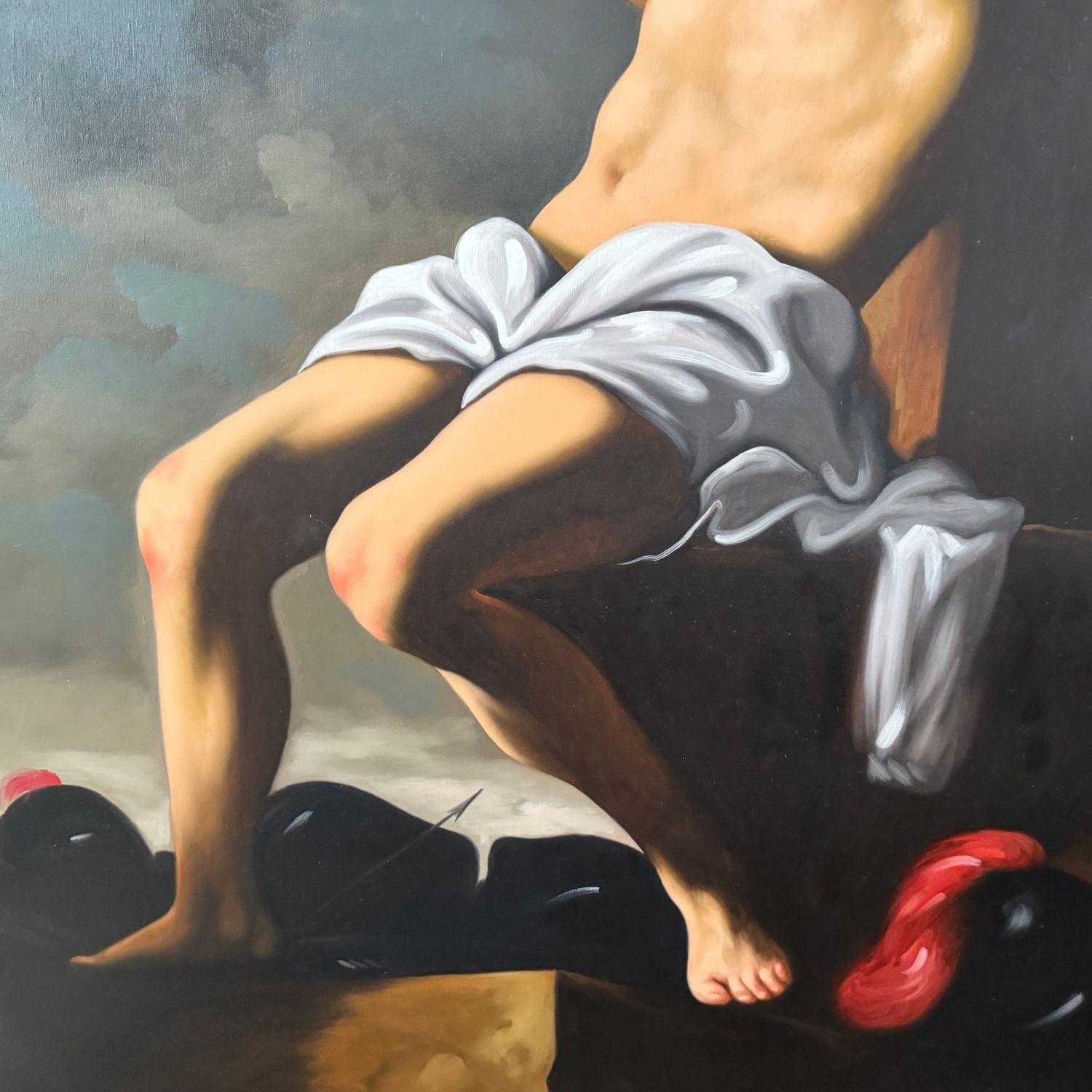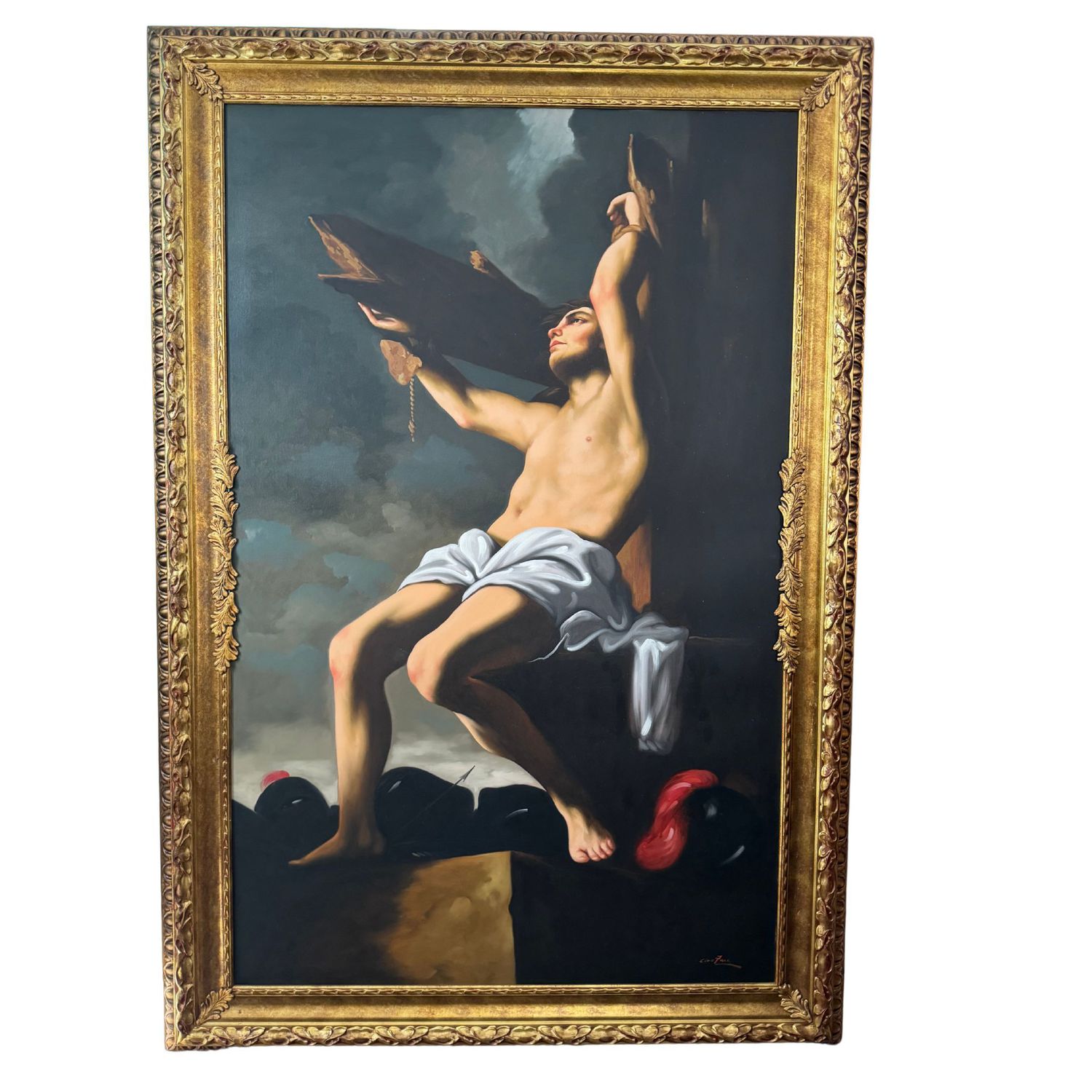 Dipinto olio su tela, periodo seconda metà del XX secolo scuola Italiana, raffigurante San Sebastiano, tratto da un'opera di Mattina Preti.