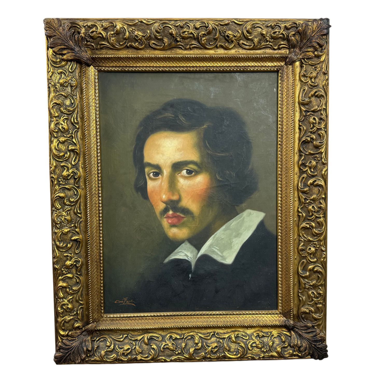 Dipinto olio su tela, periodo seconda metà del XX secolo, scuola Italiana raffigurante Ritratto di Gian Lorenzo Bernini.