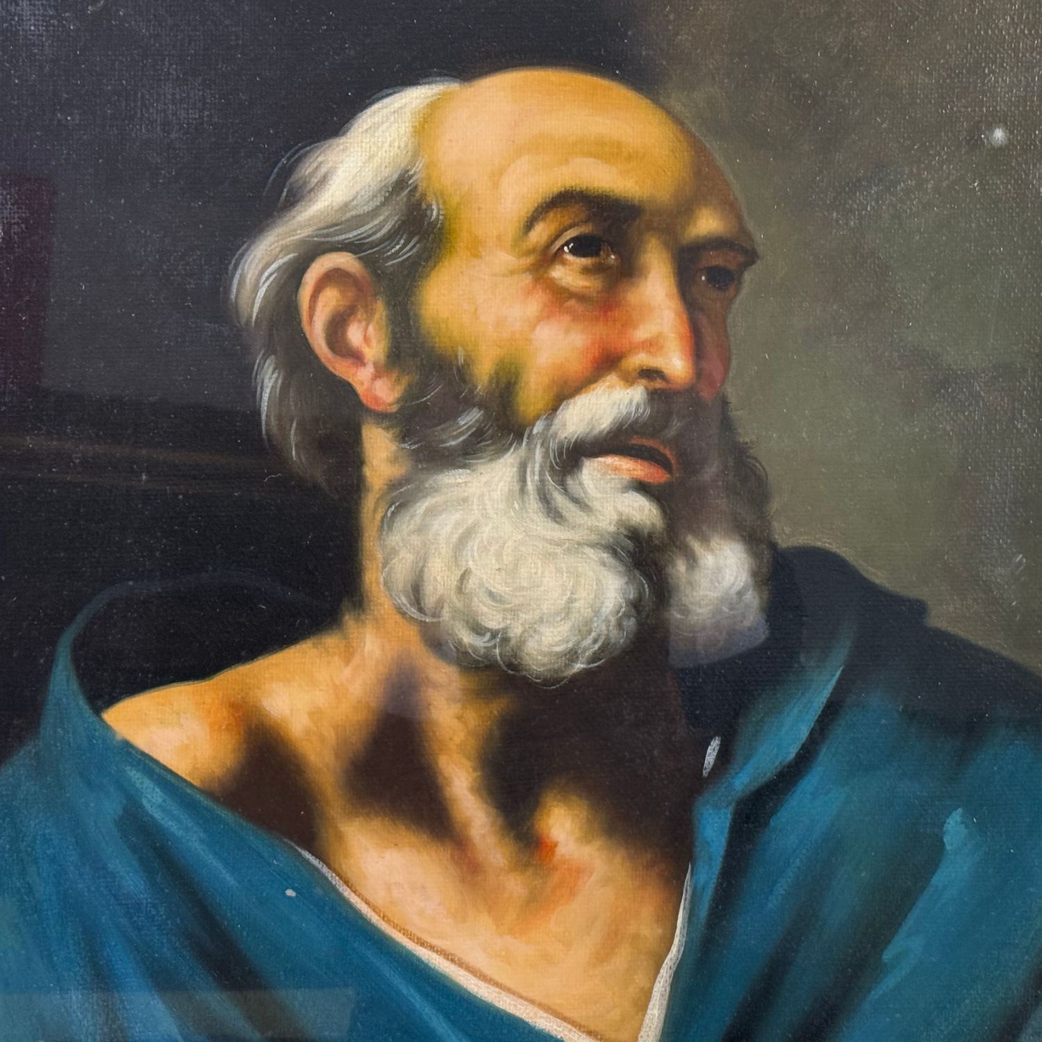 Dipinto olio su tela, periodo seconda metà del XX secolo, scuola Italiana raffigurante Vecchio profeta.