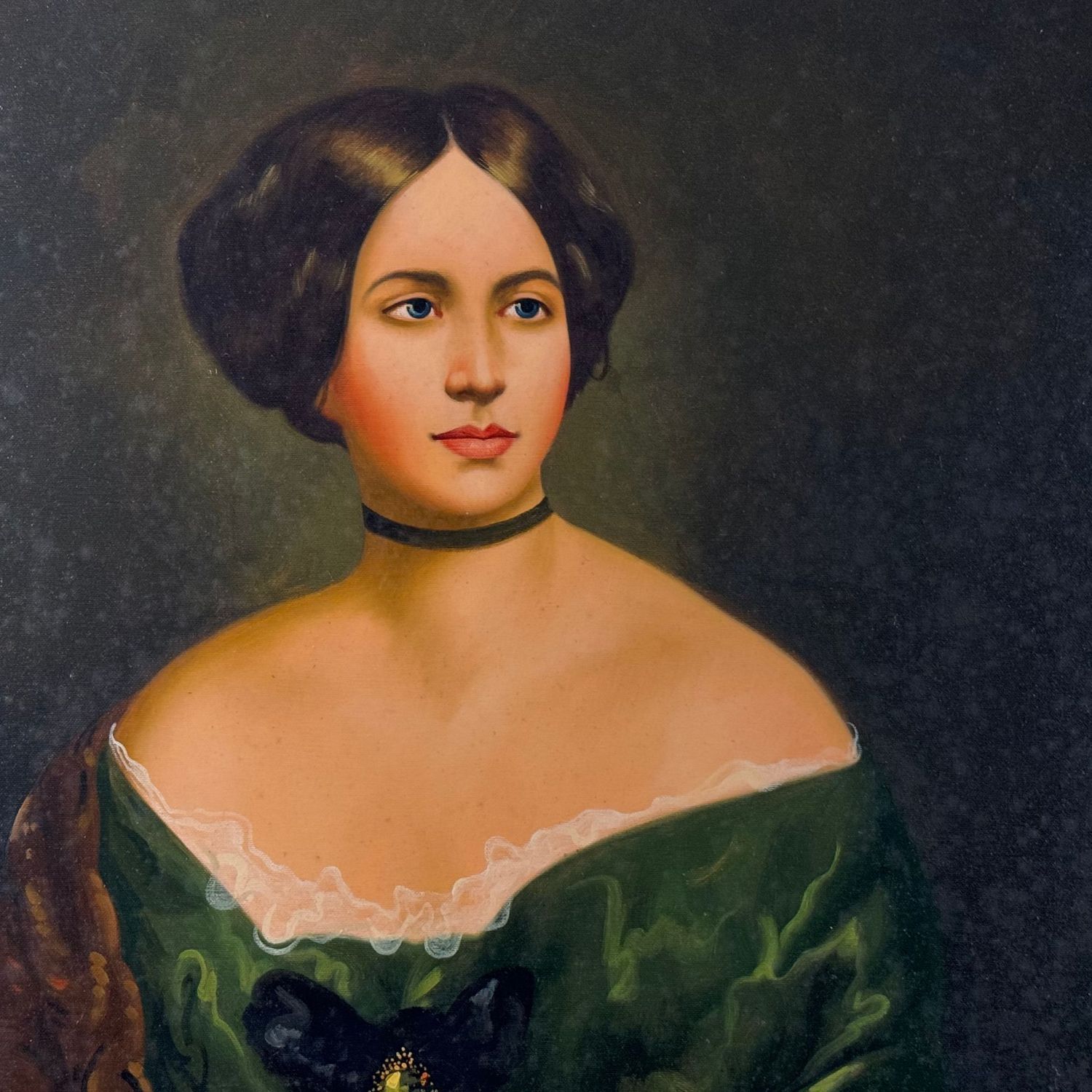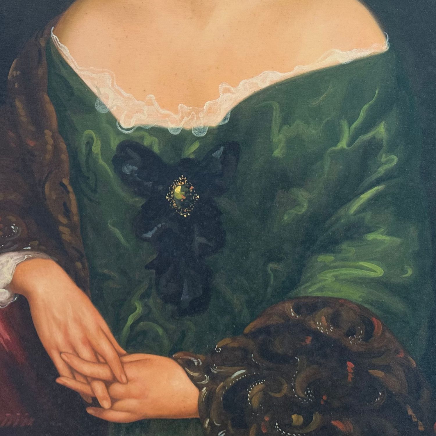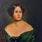 Dipinto olio su tela, periodo seconda metà XX secolo scuola Italiana, raffigurante Ritratto di donna in abito elegante.