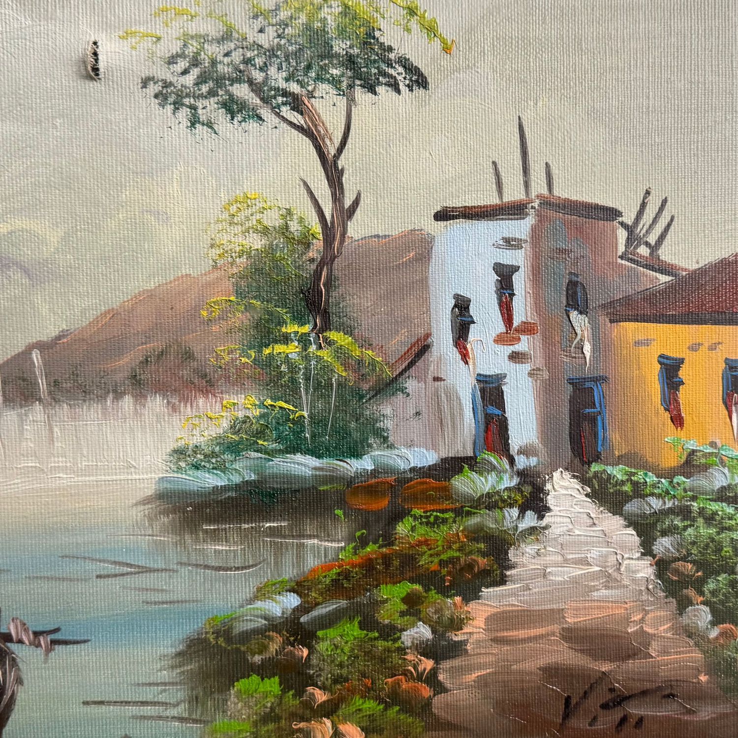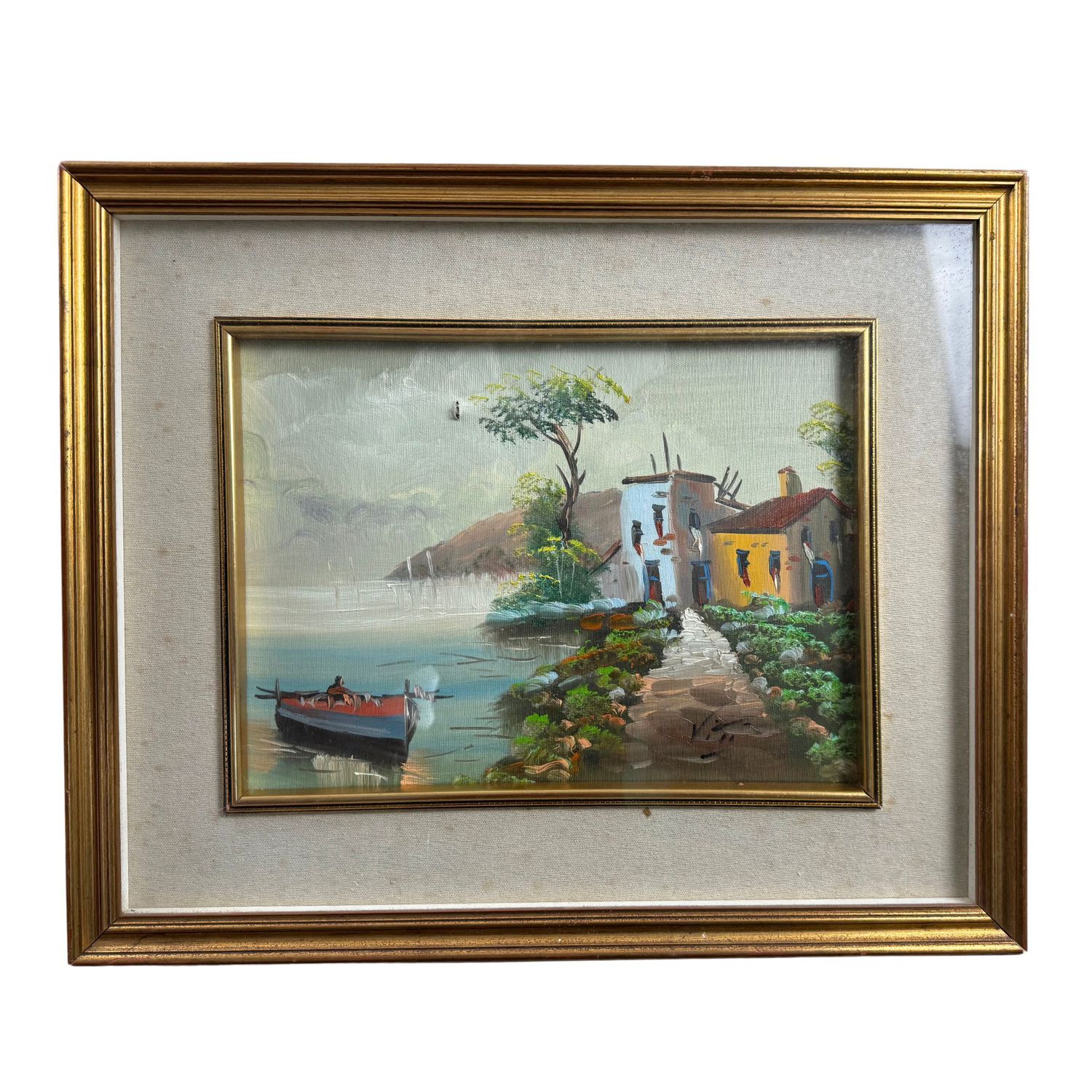 Dipinto olio su tela, periodo seconda metà del XX secolo, scuola Italiana raffigurante Scorcio di Costiera.