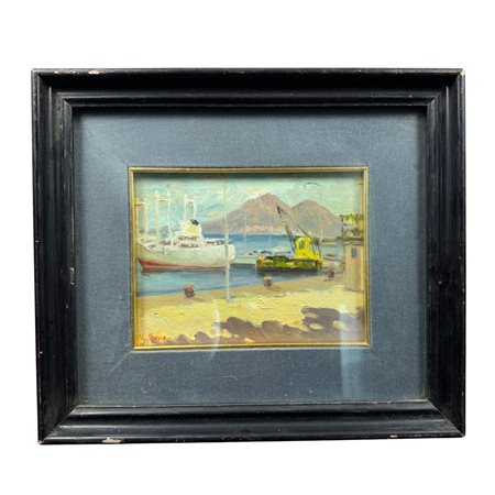 Dipinto olio su tavola, periodo XX secolo scuola Italiana, raffigurante Scorcio di marina a Castellammare di Stabia.
