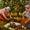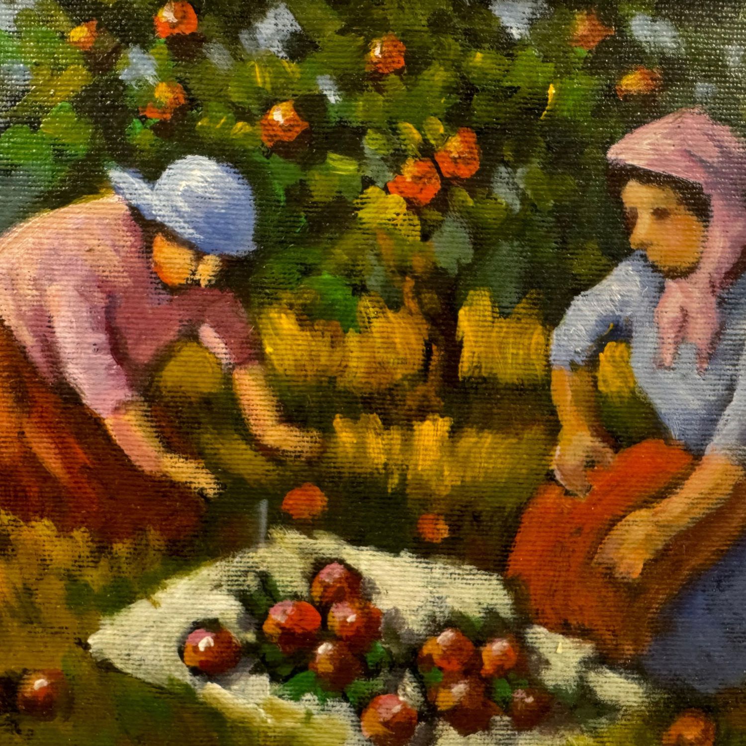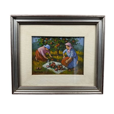 Dipinto olio su tela, periodo XX secolo scuola Italiana, raffigurante La raccolta delle mele.