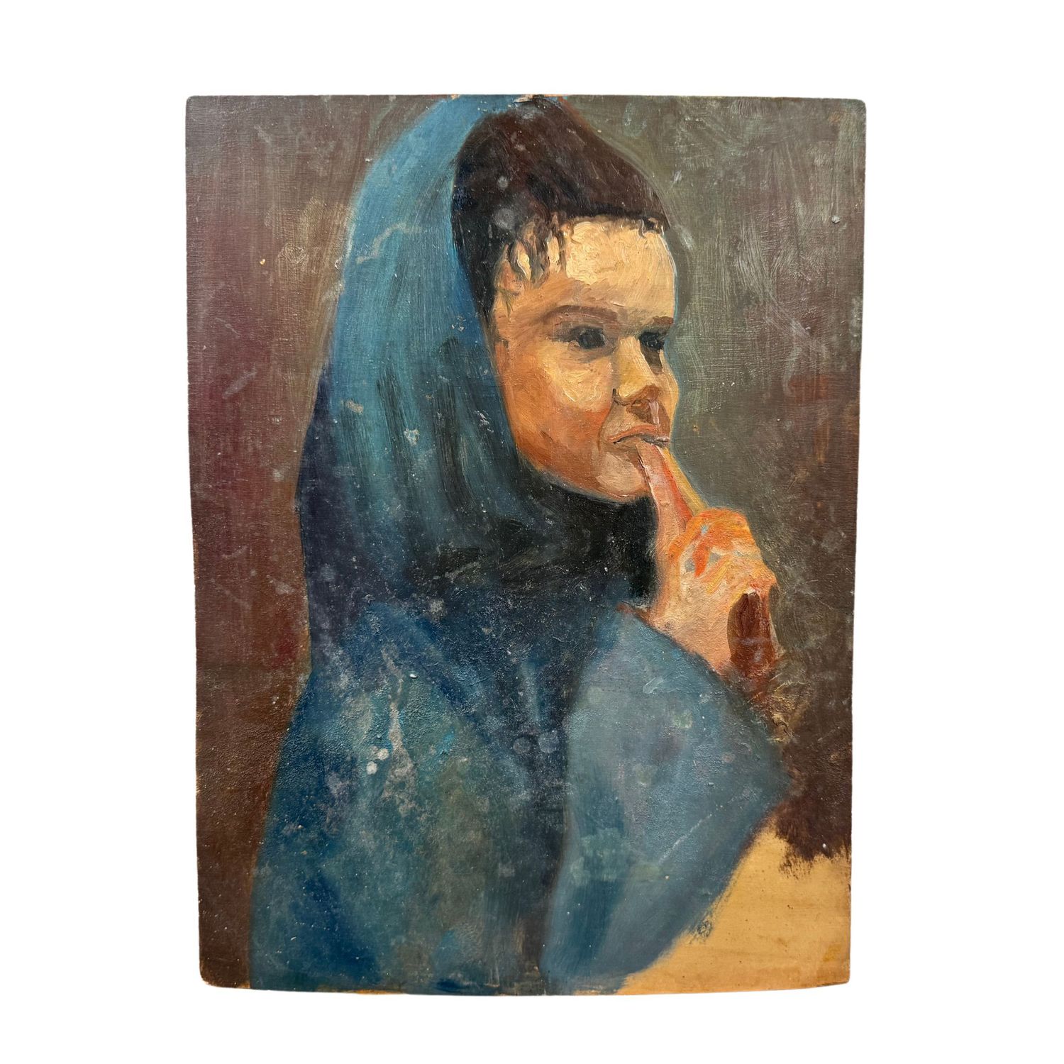 Dipinto olio su pannello, periodo XX secolo scuola italiana, raffigurante Ritratto di giovane donna.