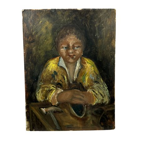 Dipinto olio su pannello, periodo XX secolo scuola Italiana, raffigurante Ritratto di ragazzo.