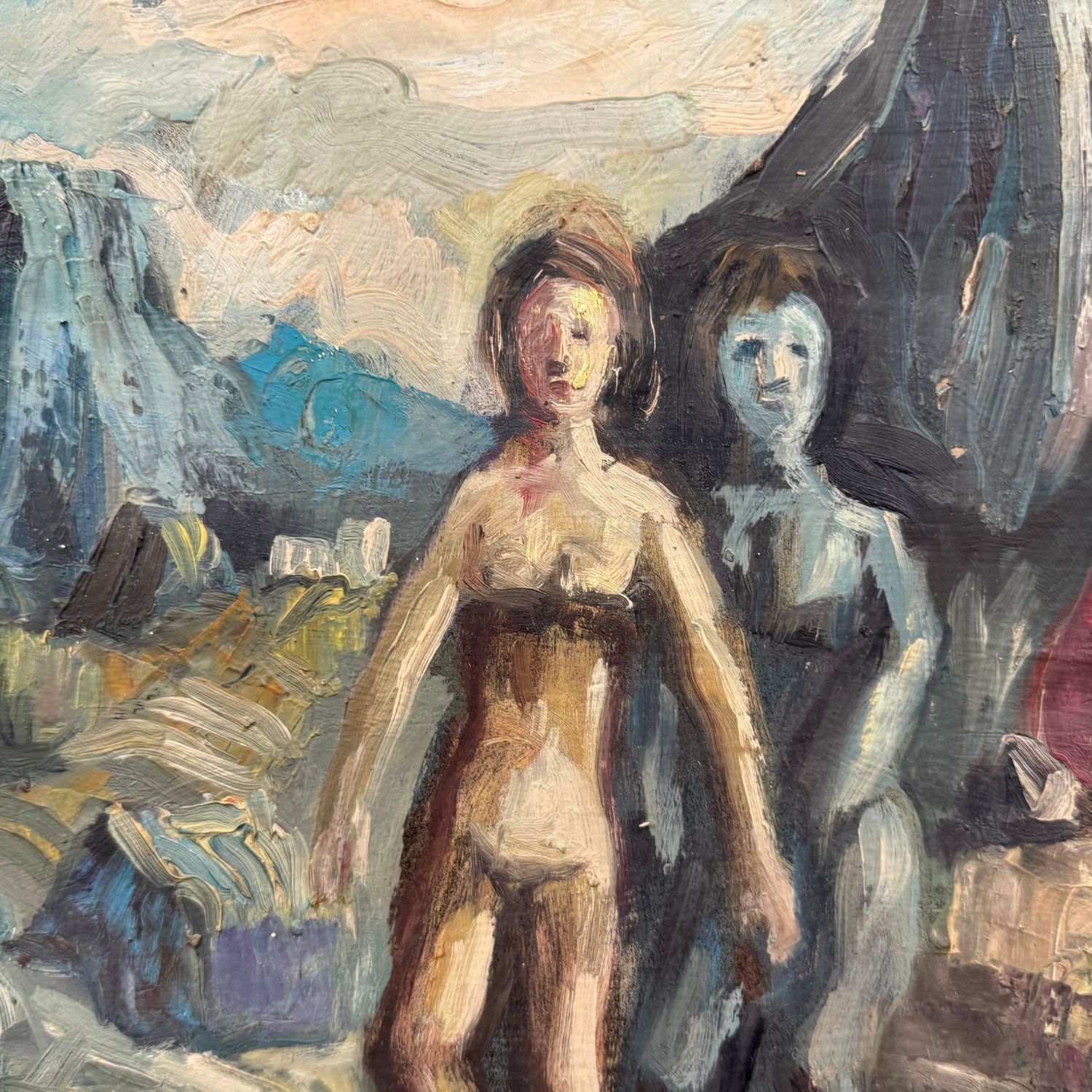 Dipinto olio su pannello, periodo XX secolo scuola Italiana, raffigurante Figure femminili.