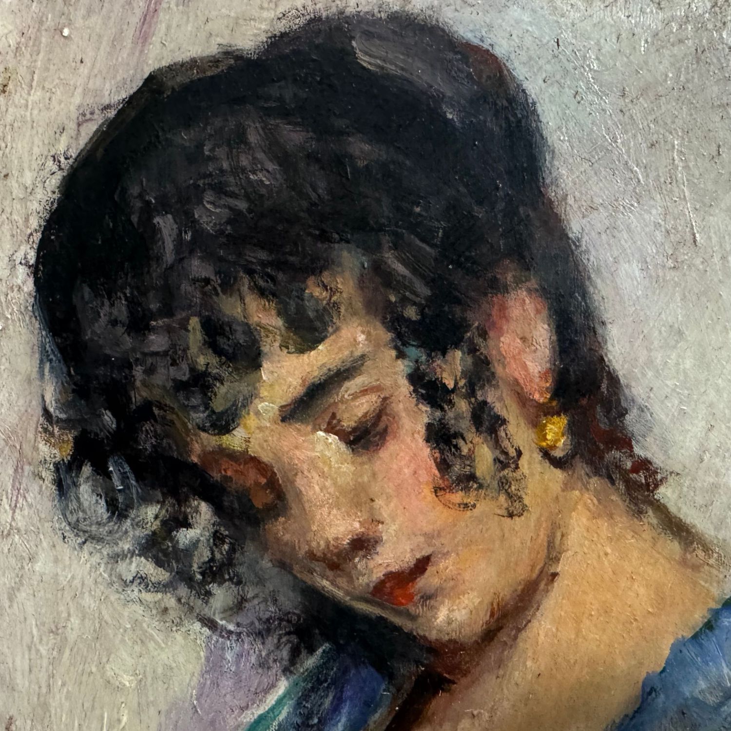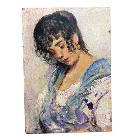 Piccolo dipinto olio su pannello, periodo XX secolo scuola Italiana, raffigurante Ritratto di donna.