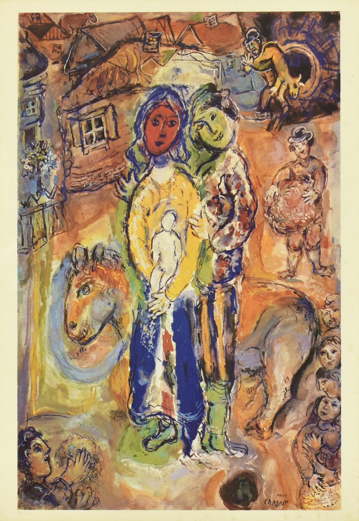 D'apres Marc Chagall LES PAYSANS riproduzione fotolitografica su carta, cm...