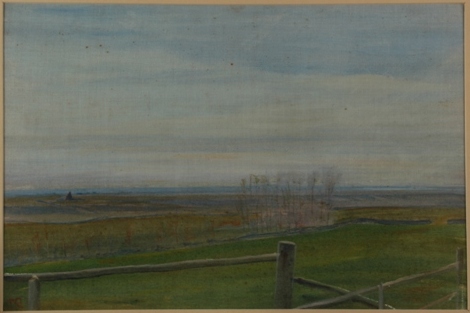 Napoleone Parisani Camerino 1854 – Roma 1932 Campagna romana tecnica mista cm 30 x 43 siglato in basso a sinistra N.P. sul retro a matita Napoleone Parisani “Campagna romana d'inverno”