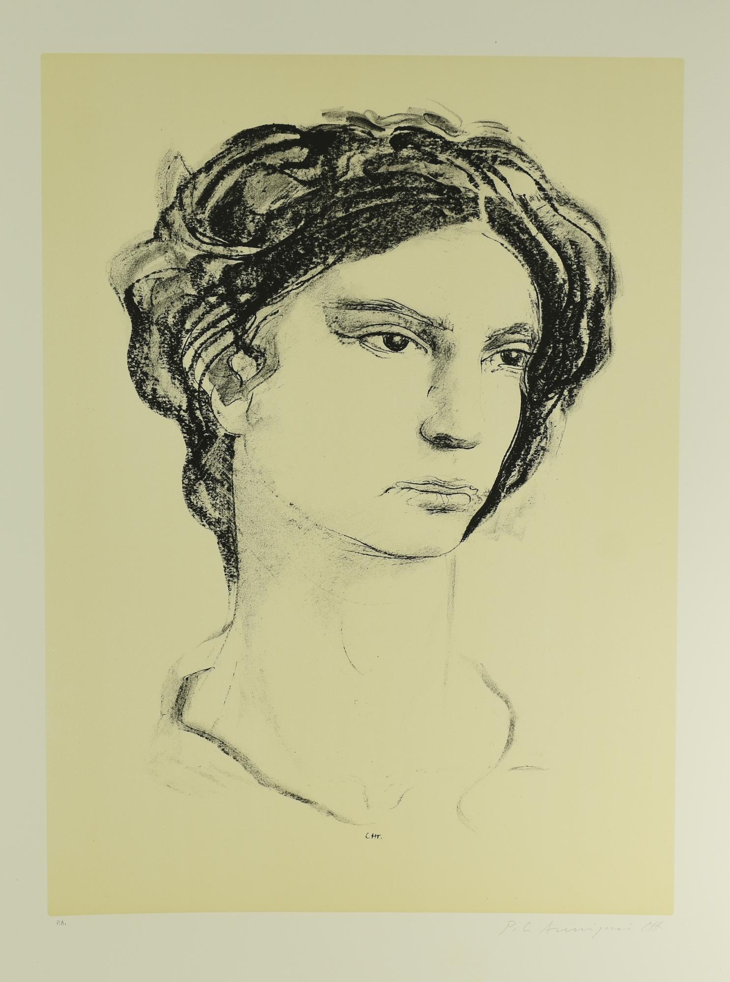 Pietro Annigoni RITRATTO FEMMINILE litografia su carta, cm 70x50; es. P.A....