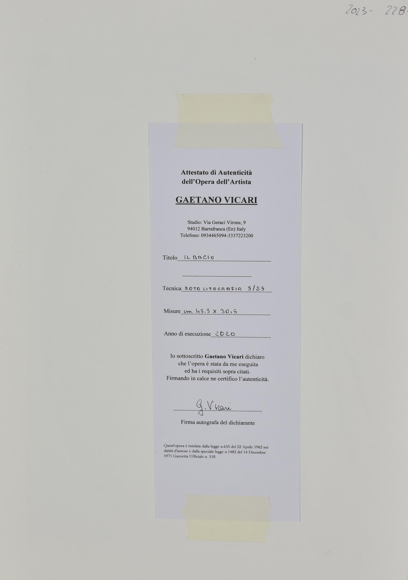 Lotto 58 | Gaetano Vicari IL BACIO fotolitografia su carta, cm 45,5x30; es. 5/25 firma,...