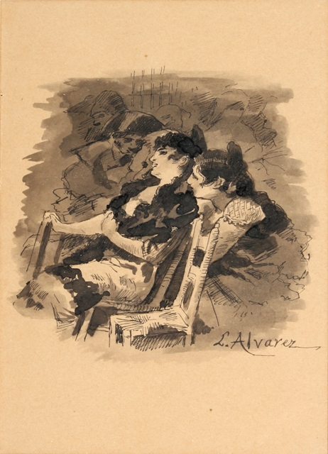LUIS ALVAREZ Madrid 1836 - 1901 Senza titolo China e china acquerellata su carta, cm. 19,2 x 12 Firma in basso a destra
