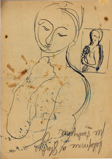 MARIO SIRONI Sassari 1885 - Milano 1961 Volti, 1930 ca. China doubleface su carta cm. 29,5 x 21 Firma e scritta autografa al retro Provenienza Collezione Estorich, Londra