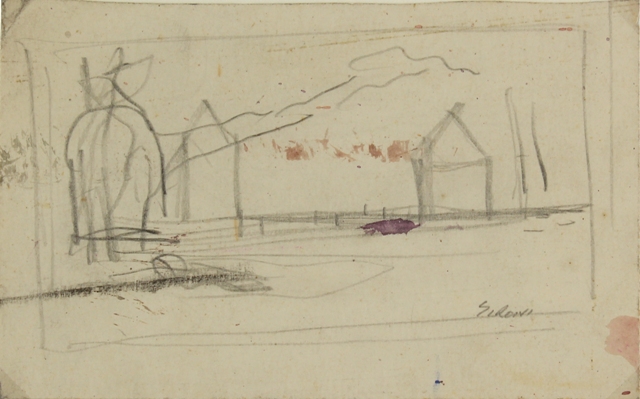 MARIO SIRONI Sassari 1885 - Milano 1961 Paesaggio, 1935 ca. Sketch a matita su carta cm. 10,5 x 16,8 Firma in basso a destra Provenienza Collezione Estorich, Londra