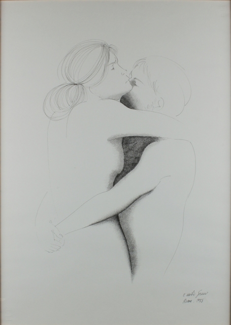 EMILIO GRECO Catania 1913 - Roma 1995 Amanti, 1978 China su carta, cm. 70 x 50 Firma e data in basso a destra Autentica su foto dell'Artista
