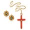 Lotto composto da orecchini in oro giallo 18 Kt con paste di turchese e catenina in metallo con croce in corallo