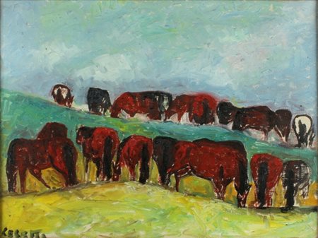 GIUSEPPE CESETTI Tuscania 1902 - 1990 Cavalli al pascolo, 1954 Olio su tela,...