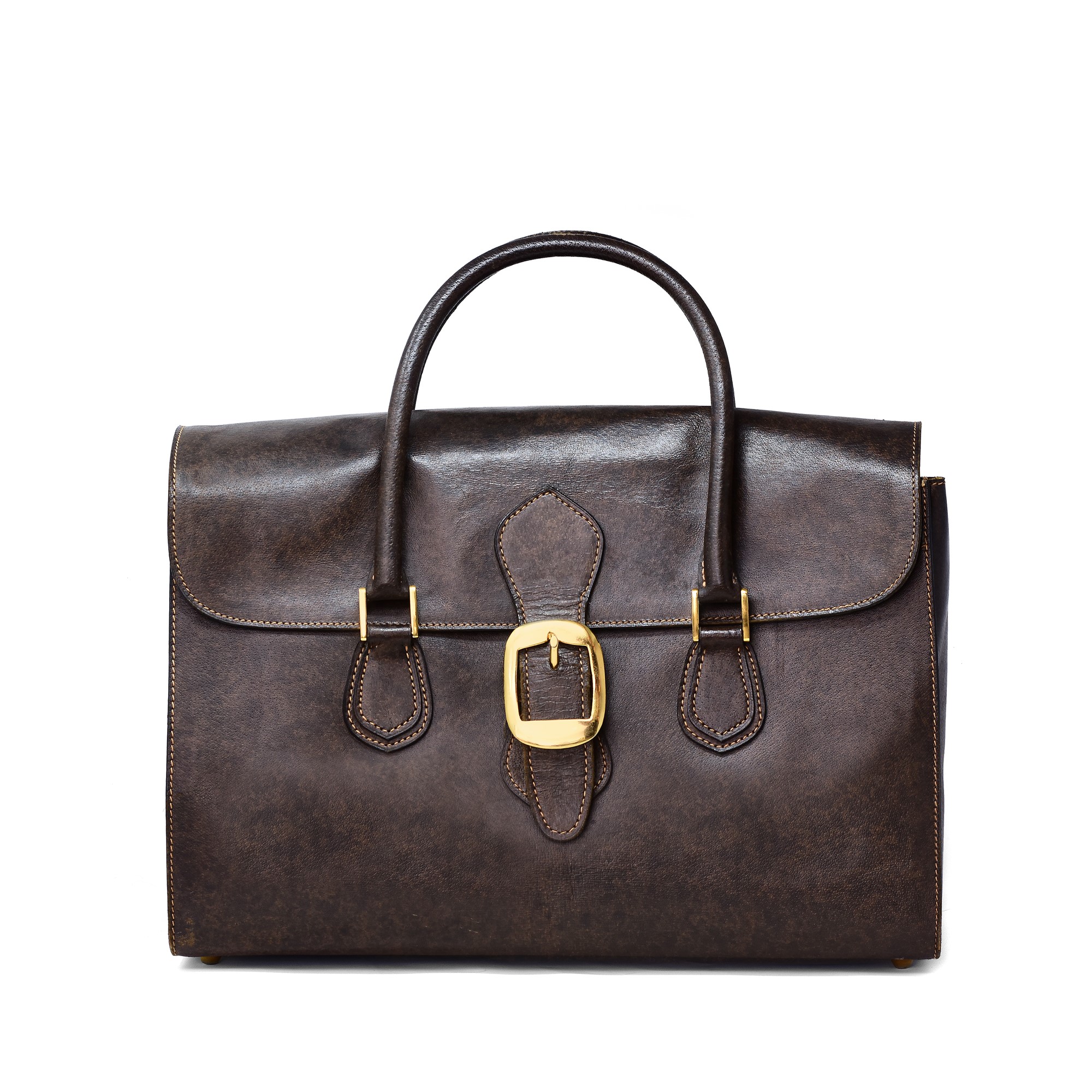 Gucci vintage travel bag in dark brown leather, with buckle closure. Internal is lined in fabric with compartment and zipper pocket. Very good conditions.