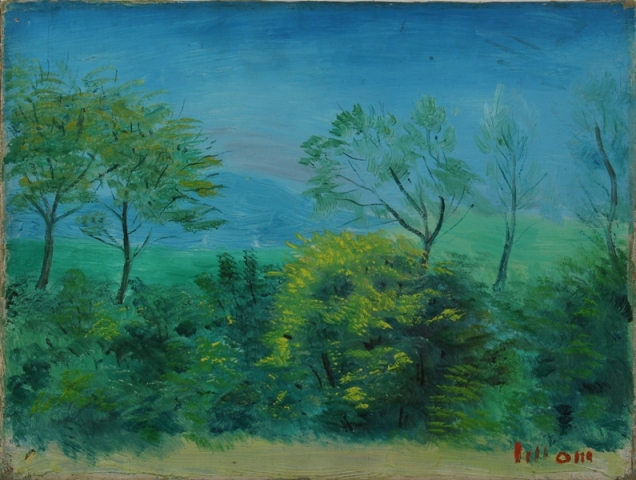 UMBERTO LILLONI Milano 1998-1980 Paesaggio, 1966 Olio su tela cm. 30 x 40 Firma in basso a destra Provenienza Raccolta N. Mobilio, Firenze, timbro al retro Foto da catalogo di mostra con n. tavola XXXI al retro. Autentica su foto Archivio Lilloni a richiesta