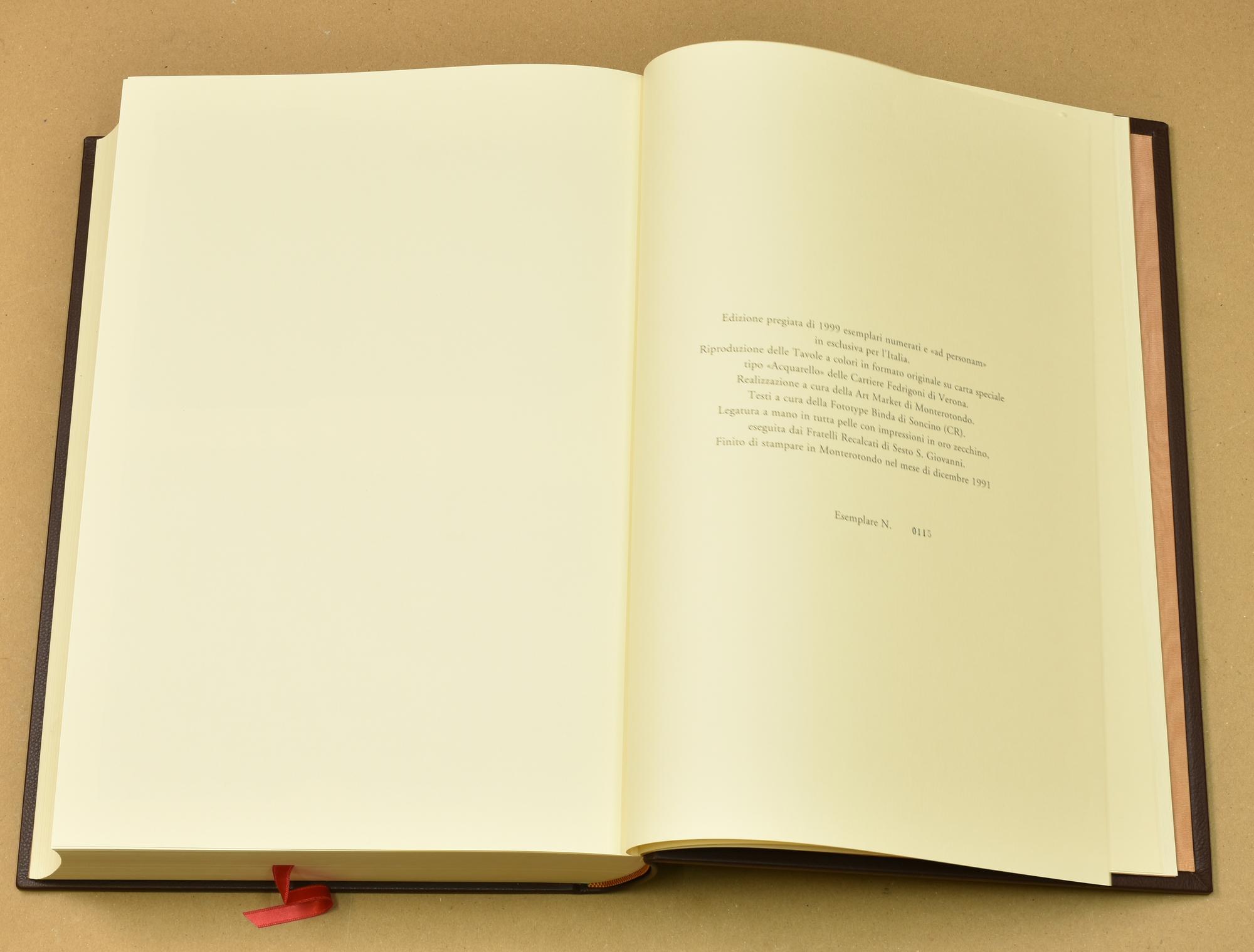 volume riccamente illustrato con riproduzioni delle tavole dell'artista, a cura di Francesco M. Caleca. Pregiata rilegatura in cuoio ed oro zecchino, edito nel 1990 da Art Market Monterotondo Roma per la collana Edizioni d'Arte