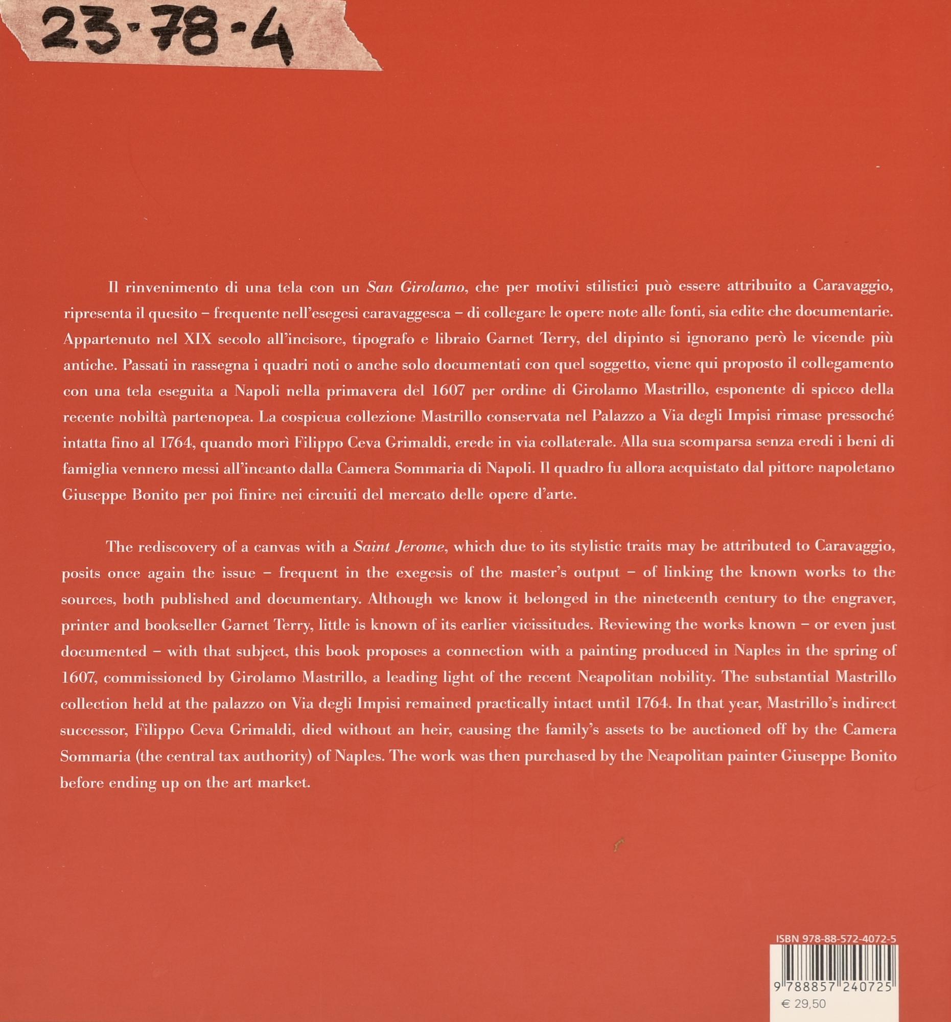 CARAVAGGIO - SAN GIROLAMO libro illustrato riguardante la storia dell'opera...