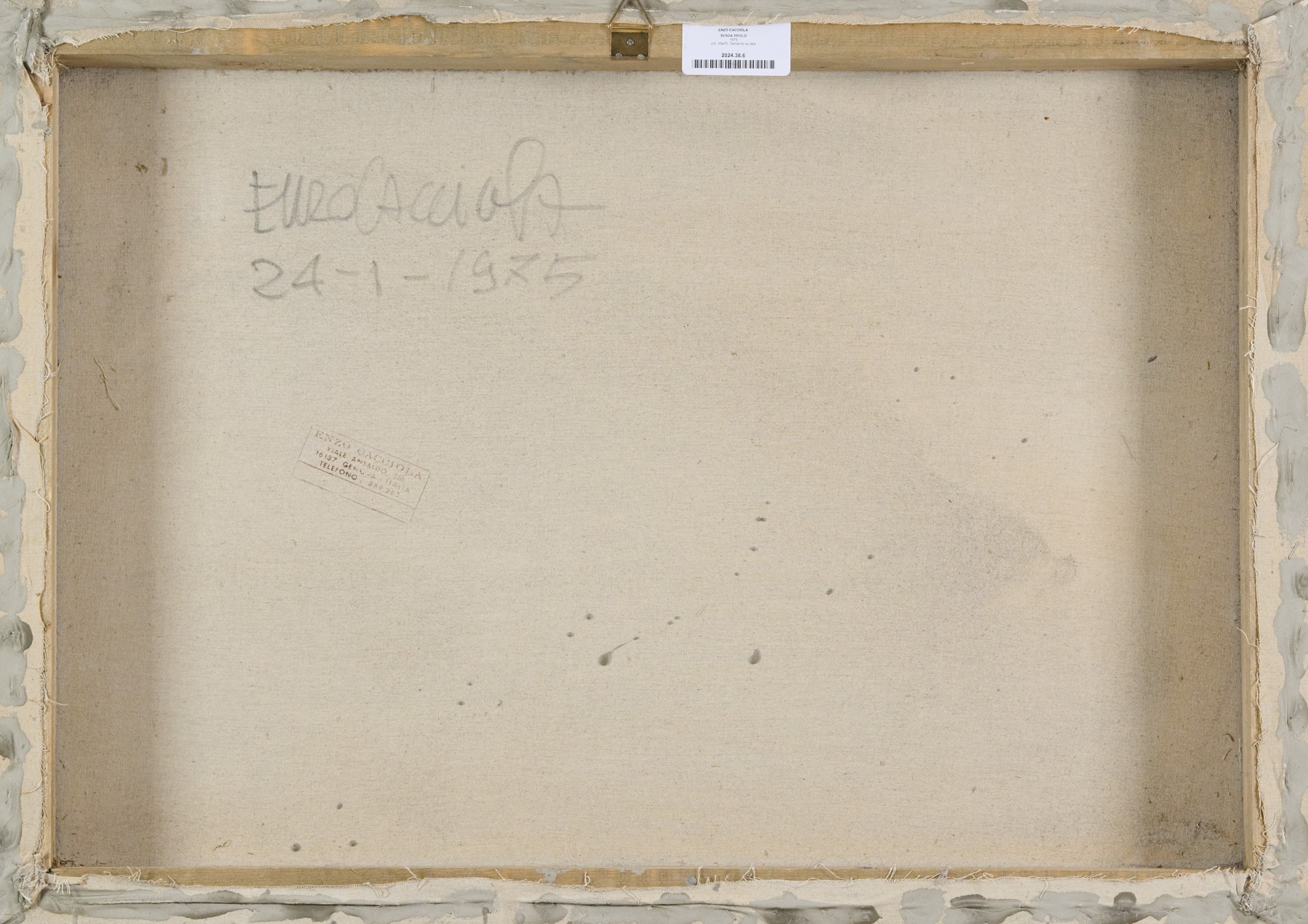 Enzo Cacciola (Arenzano, Ge 1945) Senza titolo, 1975 Cemento su tela cm....