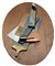 Scultura monotipo in bronzo, rame, ferro, piombo e zinco su legno antico ovale