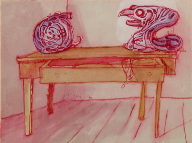 FABRIZIO CLERICI Milano 1913 - Roma 1993 Senza titolo, 1990 Tecnica mista su carta, cm. 13,5 x 18,5 Firma e data al centro Visionato dall'Archivio Clerici con esito positivo