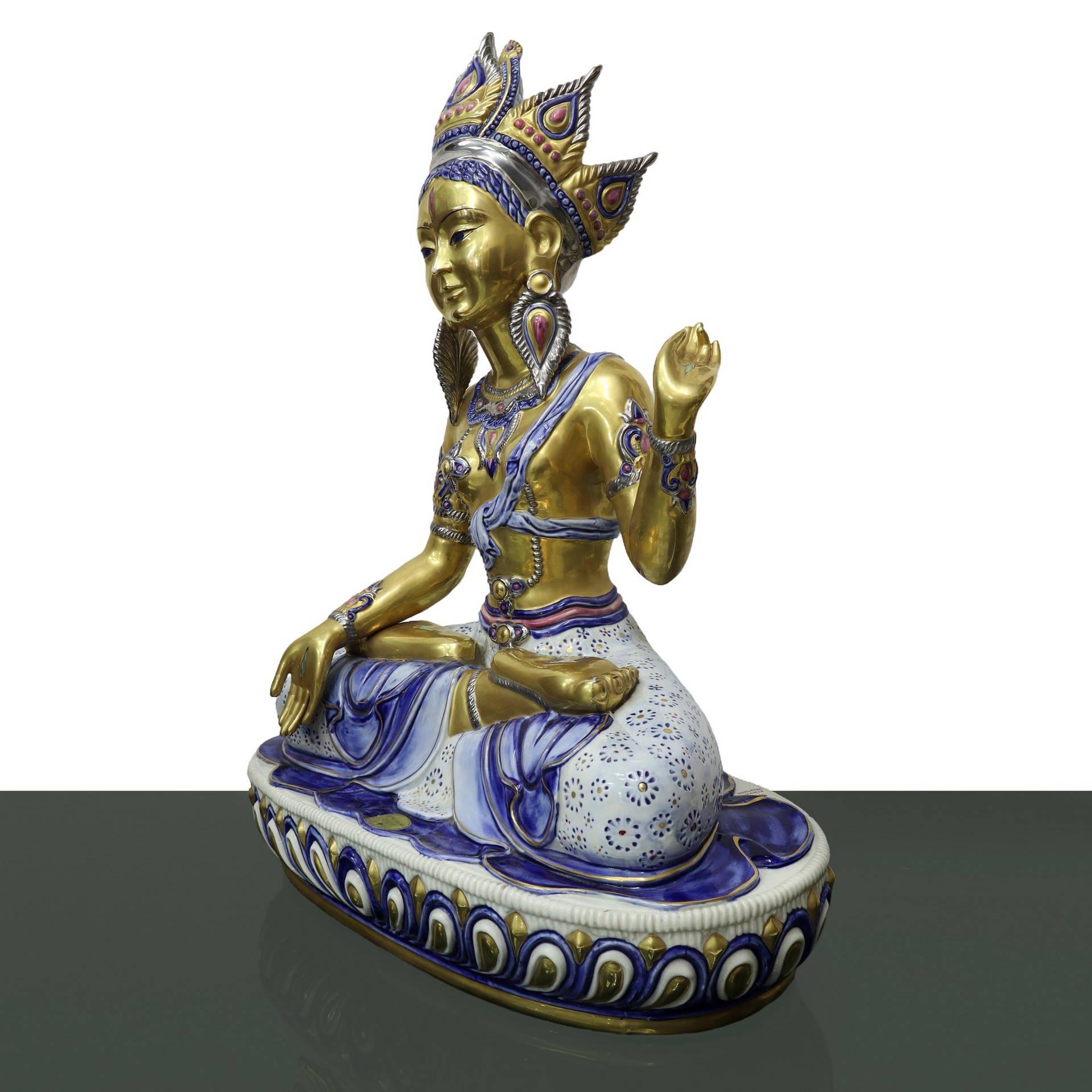 Edoardo Tasca - Principessa indiana in porcellana policroma H cm 46x44x20 Firmata Edoardo Tasca. Ed