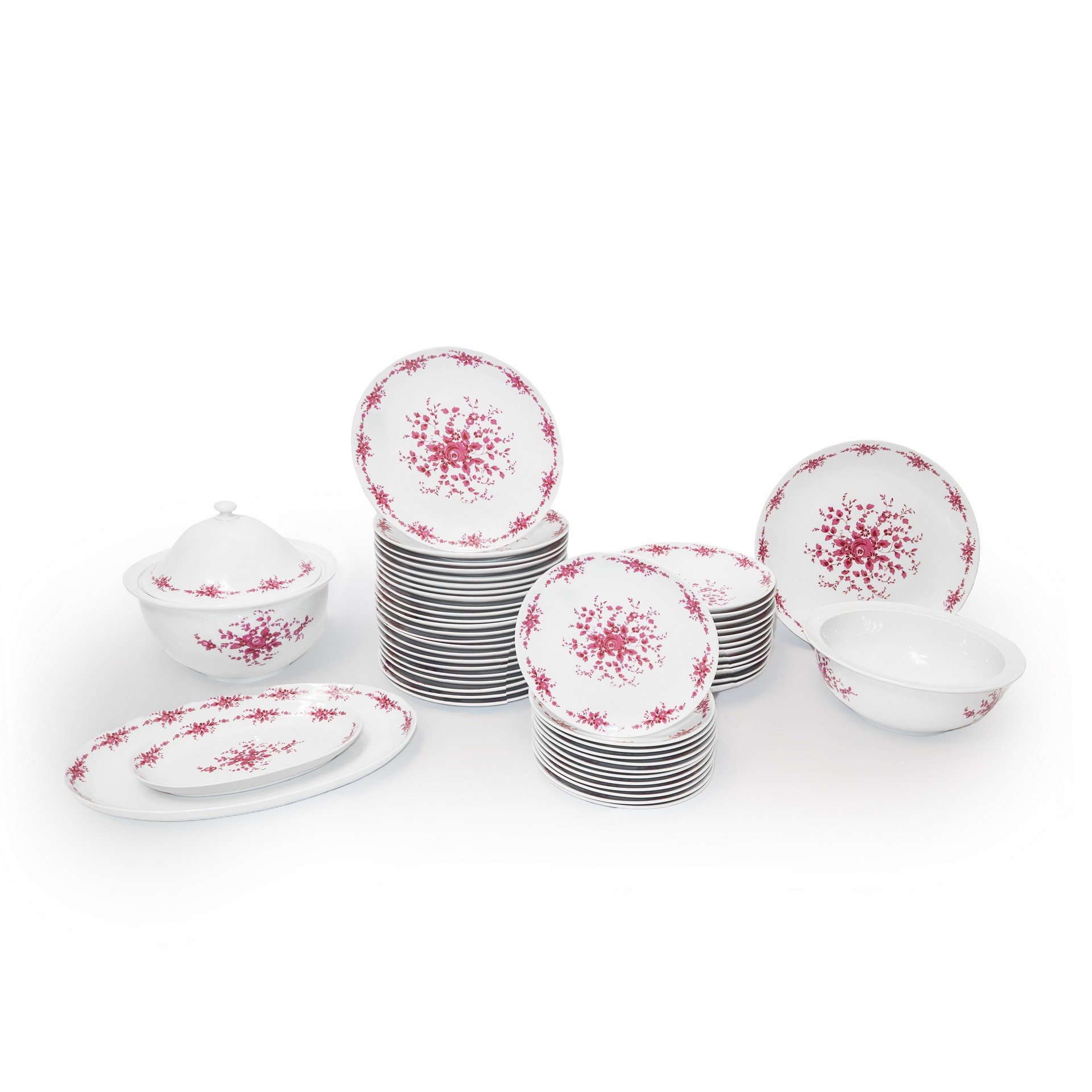 Henneberg Porzellan - Servizio di piatti in porcellana bianca con decorazioni floreali in rosa