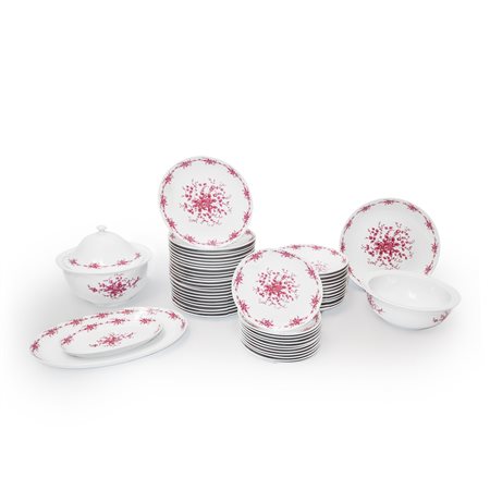 Henneberg Porzellan - Servizio di piatti in porcellana bianca con decorazioni floreali in rosa Com