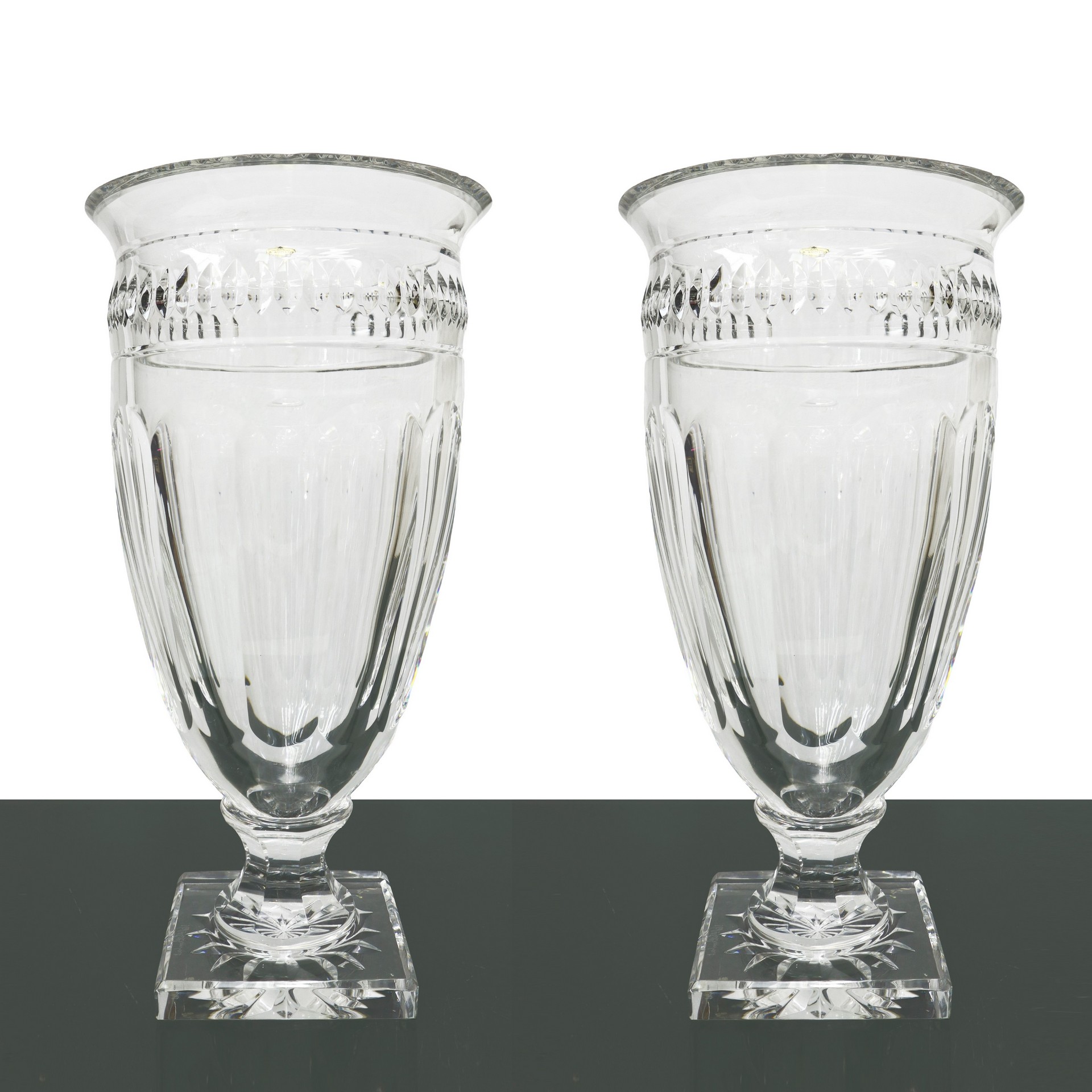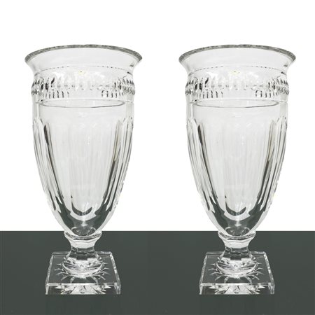 N° 2 vasi in cristallo Val Saint Lambert h cm 35,5. Base cm 12 x 12 Piccola sbeccatura sul bordo di