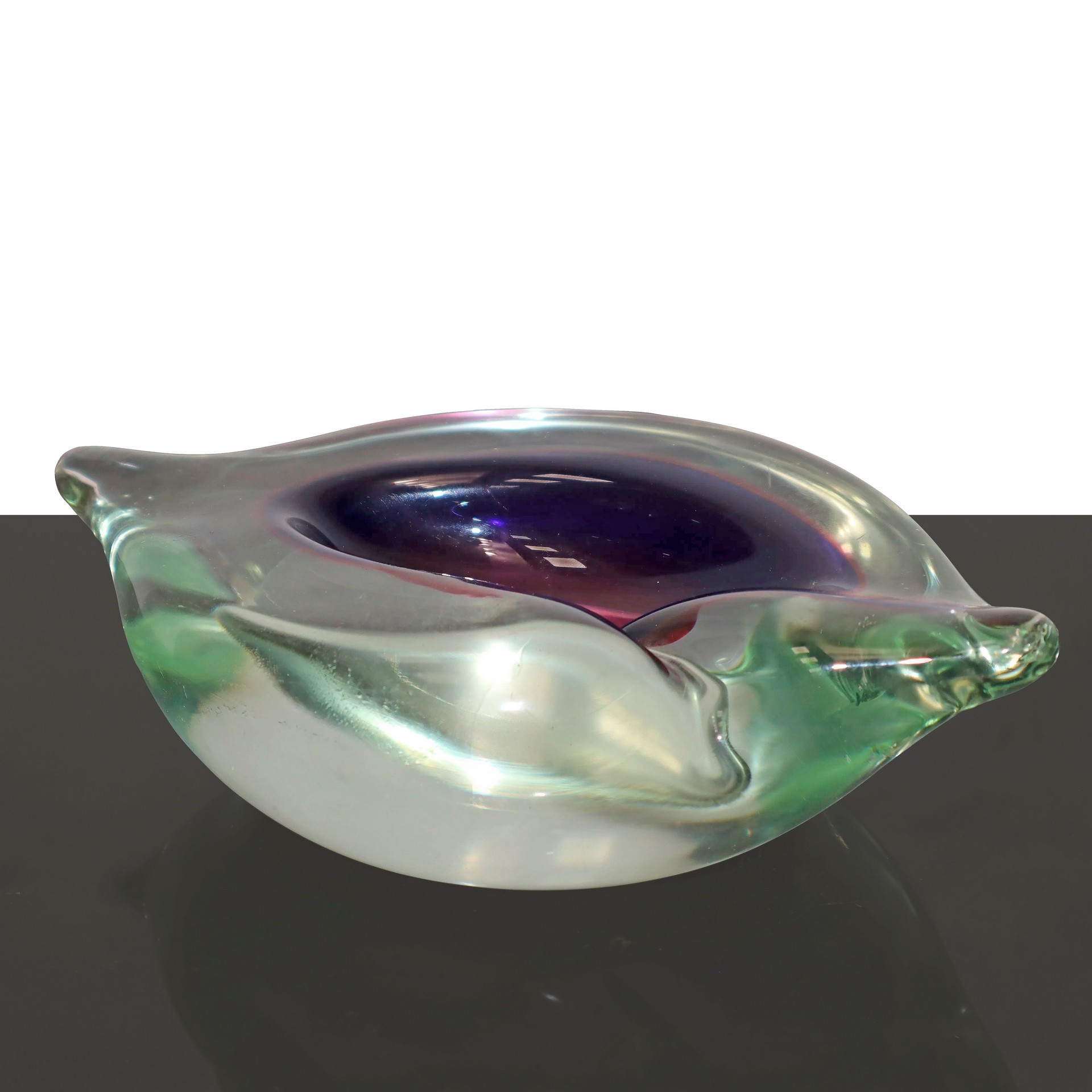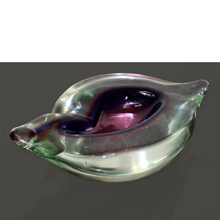 Posacenere a guisa di conchiglia con iridescenze nei toni del viola e del rosa Lunghezza cm 19.5, H