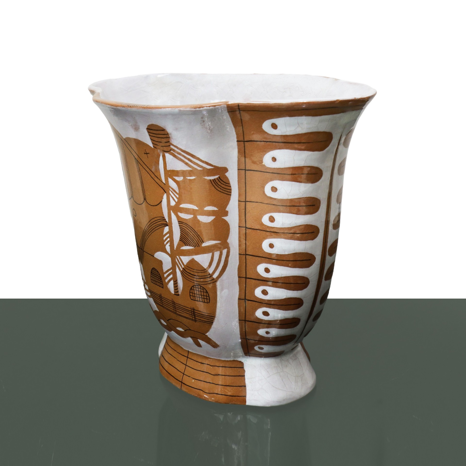 Giovanni Gariboldi (1908-Milano 1971) - Vaso in ceramica smaltata con raffigurazione di veliero e p